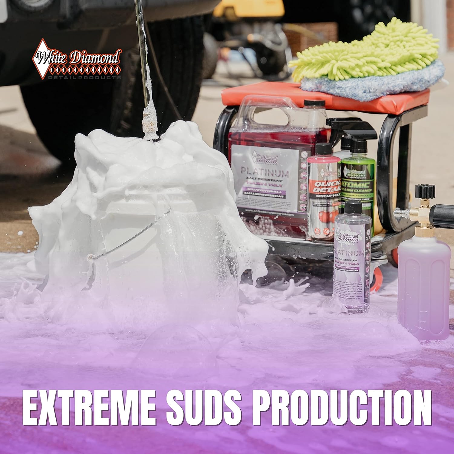 Descrição do Produto: Schultz Laboratories Foaming Car Wash and Wax – White Diamond Car Detailing Platinum Soap Wash