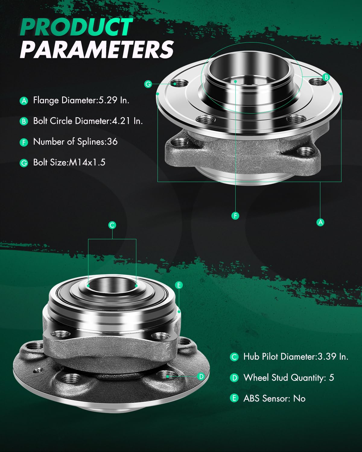 Descrição do Produto: SCITOO 2 x Conjunto de Cubo e Rolamento de Roda Dianteiro para Volvo 513194 8672371