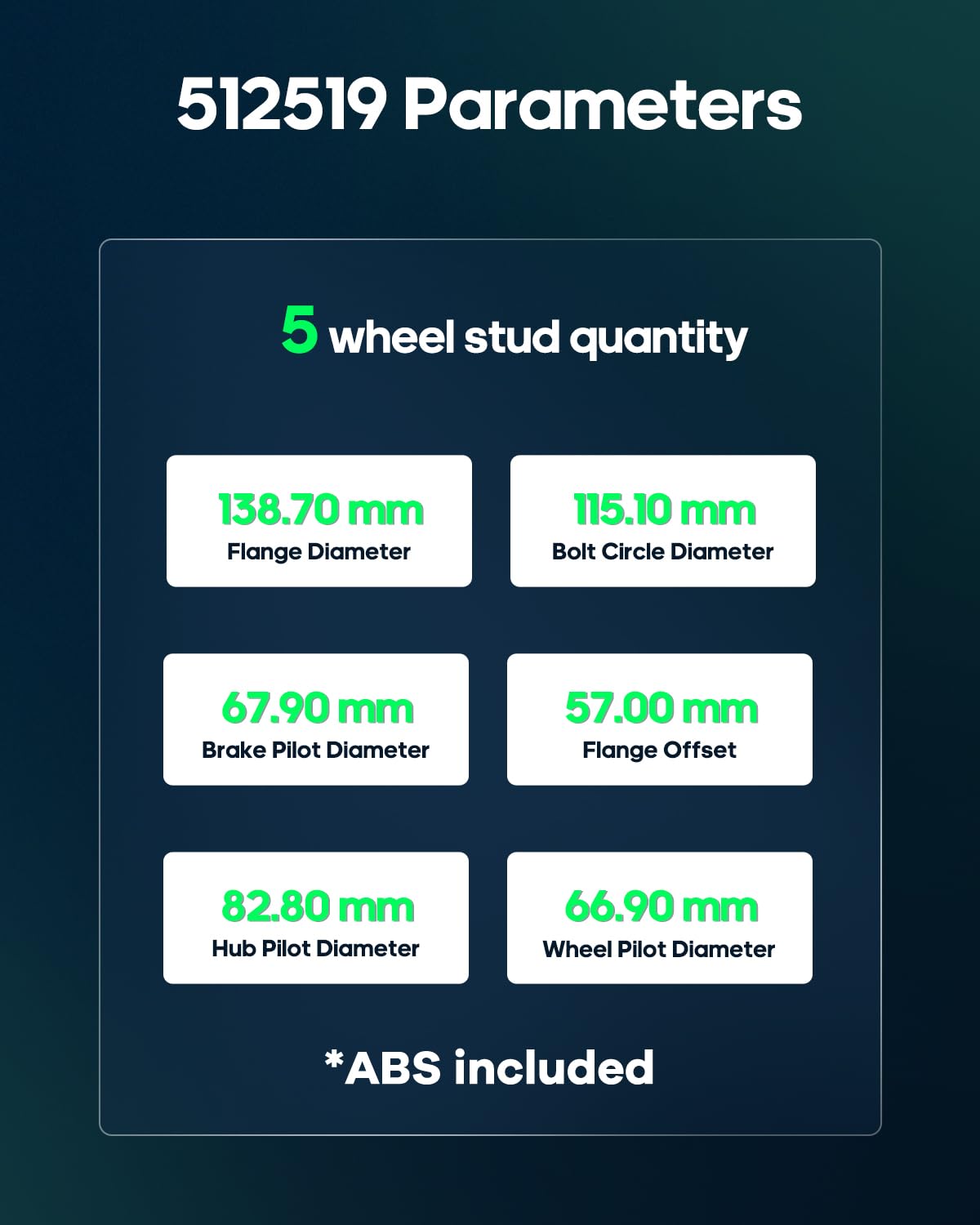 – Conjunto de Rolamento de Roda e Cubo, 512519 VKBA7649 MB76301 WE61801, com ABS, adequado para as posições esquerda, traseira e direita.