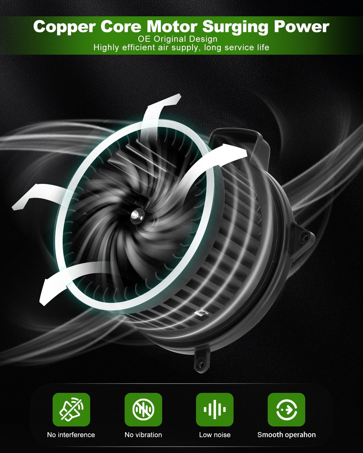 FUNÇÃO: O motor pode ser ajustado livremente para direcionar o ar frio ou quente do ar-condicionado para o interior do veículo, circulando eficientemente o ar fresco e ajustando a temperatura. Ele proporciona um espaço de condução confortável e silencioso. Se o ar que ajusta a temperatura interna do carro não estiver saindo, ou se o fluxo de ar estiver irregular ou barulhento, é provável que o motor do ventilador esteja com defeito e precise ser substituído.