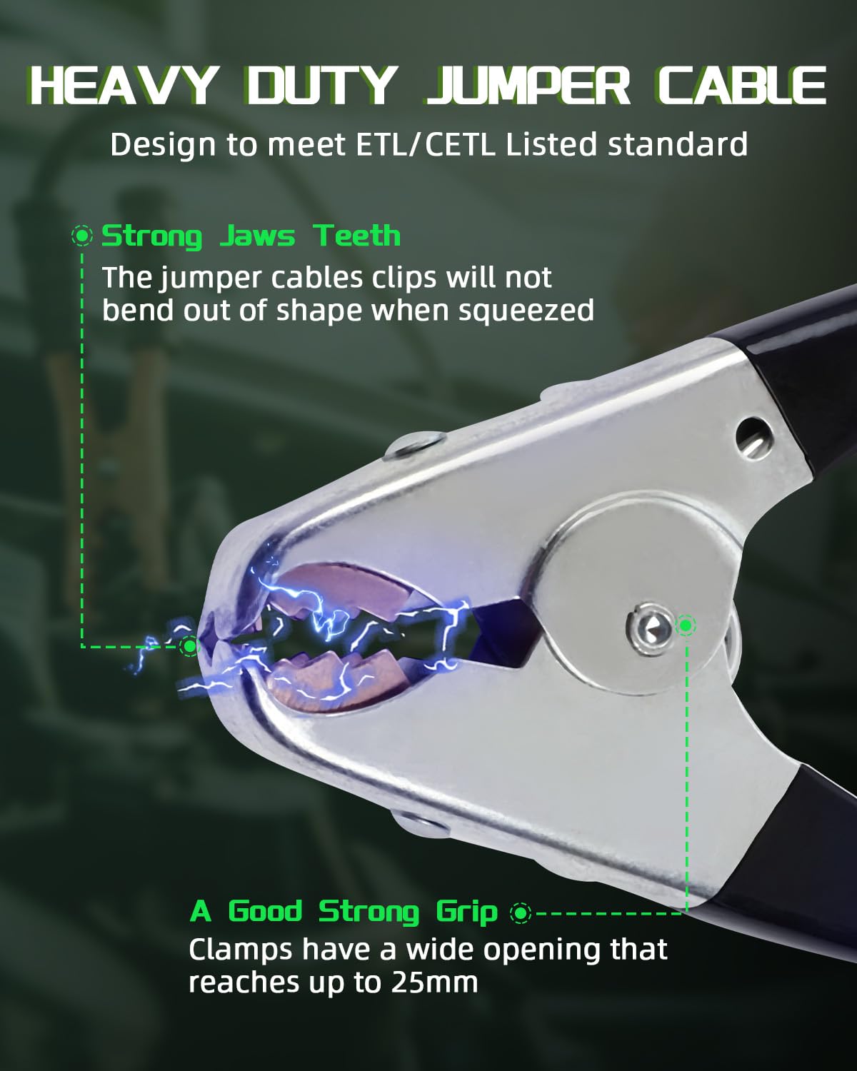 Os Cables de Partida SCITOO são a escolha ideal para quem valoriza segurança e eficiência em situações de emergência automotiva. Com um impressionante comprimento de 30 pés e uma capacidade robusta de 1100 AMP, esses cabos são projetados para atender a uma ampla gama de veículos, desde carros compactos até caminhões pesados. Equipados com 4 grampos gigantes em formato de papagaio, que possuem dentes serrilhados e molas de alta resistência, garantem uma aderência excepcional e segura durante o uso.