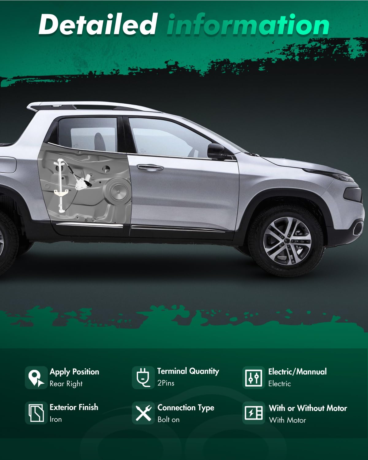 - Substituição de Upgrade: O material do regulador de janela e do conjunto do motor SCITOO foi aprimorado. O suporte de elevação robusto assegura uma operação eficiente e maior durabilidade. Além disso, o cabo de aço espesso e as extremidades capadas resistem a quebras comuns e evitam o puxão excessivo.