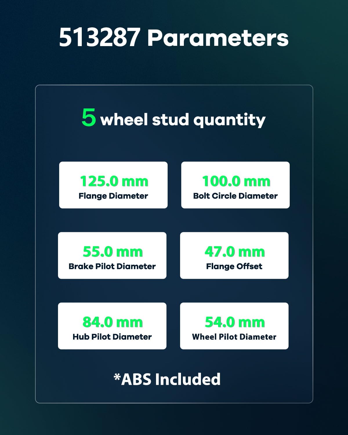 - ESPECIFICAÇÕES E PARÂMETROS – Quantidade de Parafusos: 5 Parafusos, eixo dianteiro, ABS: Não, OE 513287. O desempenho OE assegura que não haja ruídos anormais ou conexões defeituosas.