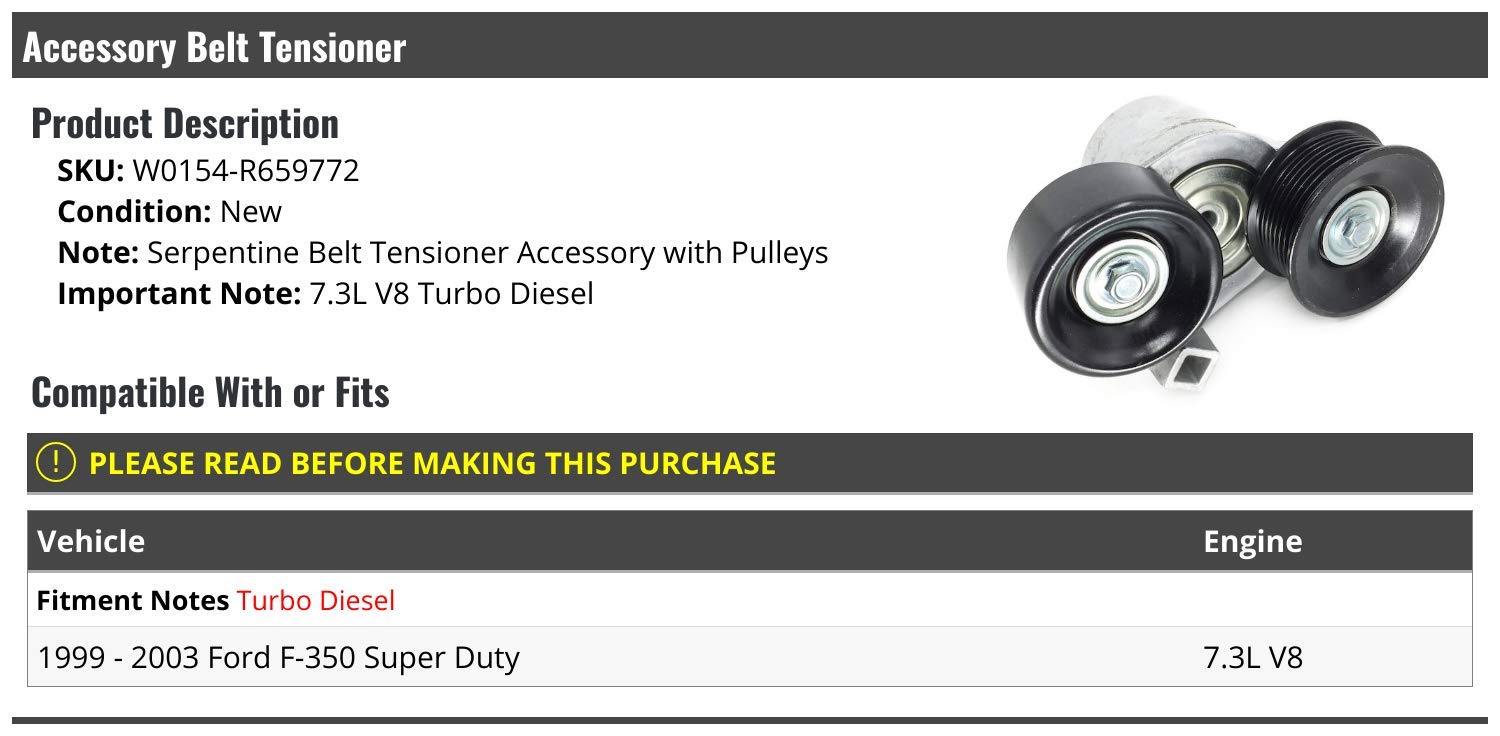 O Tensionador de Correia Acessório é um produto de ajuste específico para veículos, o que significa que ele se encaixa perfeitamente no seu motor, proporcionando uma instalação simples e rápida. A compatibilidade com o motor 7.3L V8 Turbo Diesel garante que você não apenas mantenha a performance do seu veículo, mas também prolongue a vida útil do motor, evitando problemas que podem surgir devido a uma correia mal tensionada.
