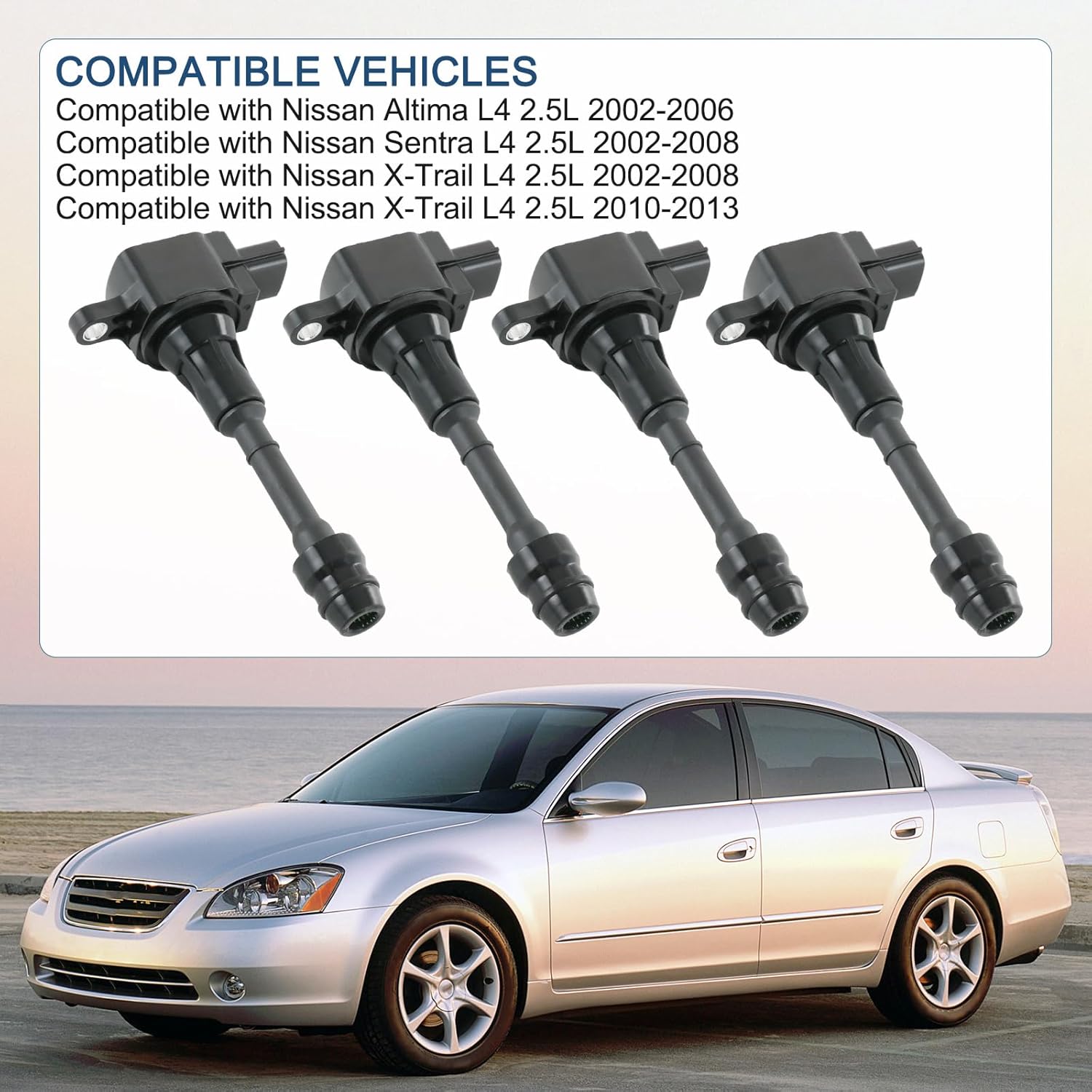 O conjunto de 4 bobinas de ignição é a solução ideal para quem busca desempenho e confiabilidade em veículos Nissan. Compatível com modelos como o Nissan Altima (2002-2006), Nissan Sentra (2002-2008) e Nissan X-Trail (2002-2008 e 2010-2013), este produto é projetado para substituir as bobinas originais com os números de peça UF350, 22448-8H315, 22448-8H310, 22448-8H300, 22448-8H311 e 1788319.