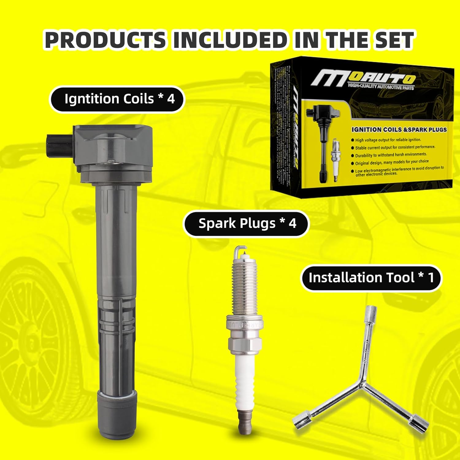 – Pacote Completo: Inclui 4 bobinas de ignição, 4 velas de ignição de irídio e uma ferramenta de remoção, oferecendo tudo o que você precisa em um só lugar.