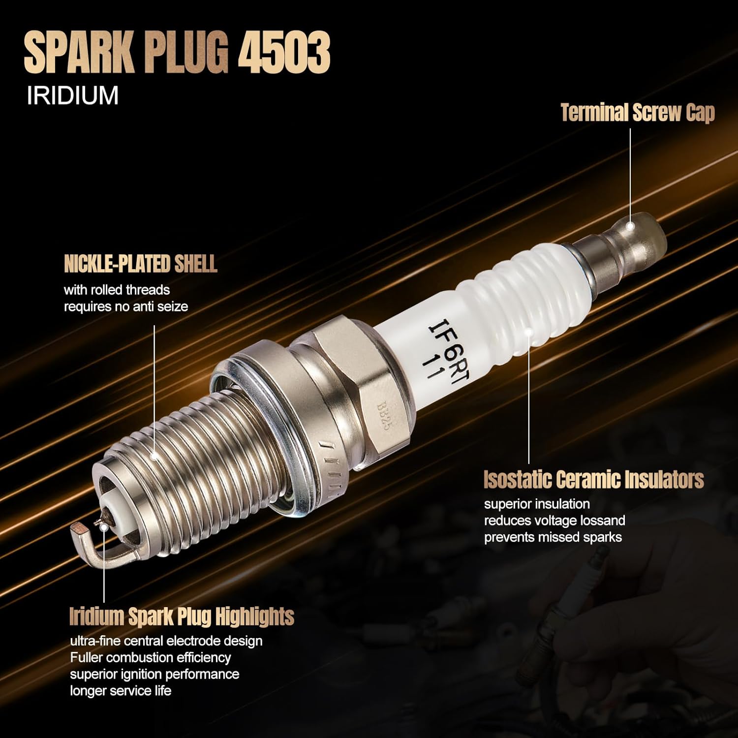 As velas de ignição, por sua vez, são projetadas com eletrodos de irídio extremamente finos, isolantes cerâmicos isostáticos e partes metálicas usinadas em CNC. Isso proporciona um desempenho de ignição superior, propriedades isolantes de alta densidade e aceleração rápida do veículo, minimizando o desgaste do motor. O número de peça OE para as velas é 4503.