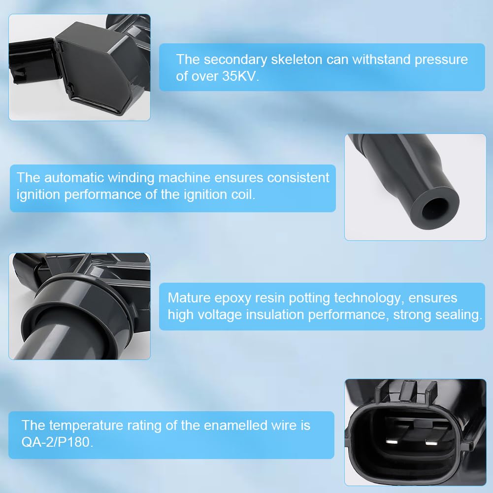 Os materiais utilizados na fabricação das bobinas de ignição possuem características de resistência a altas temperaturas, alta isolação e boa vedação. Isso garante que a bobina forneça efetivamente a energia de ignição e a alta voltagem necessárias para o sistema de ignição do motor.