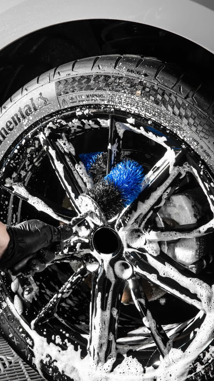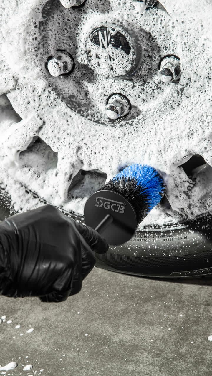 3. Limpeza: Utilize a escova para esfregar suavemente entre os raios da roda e outras áreas de difícil acesso. A flexibilidade das cerdas permite uma limpeza eficaz sem arranhar a superfície.