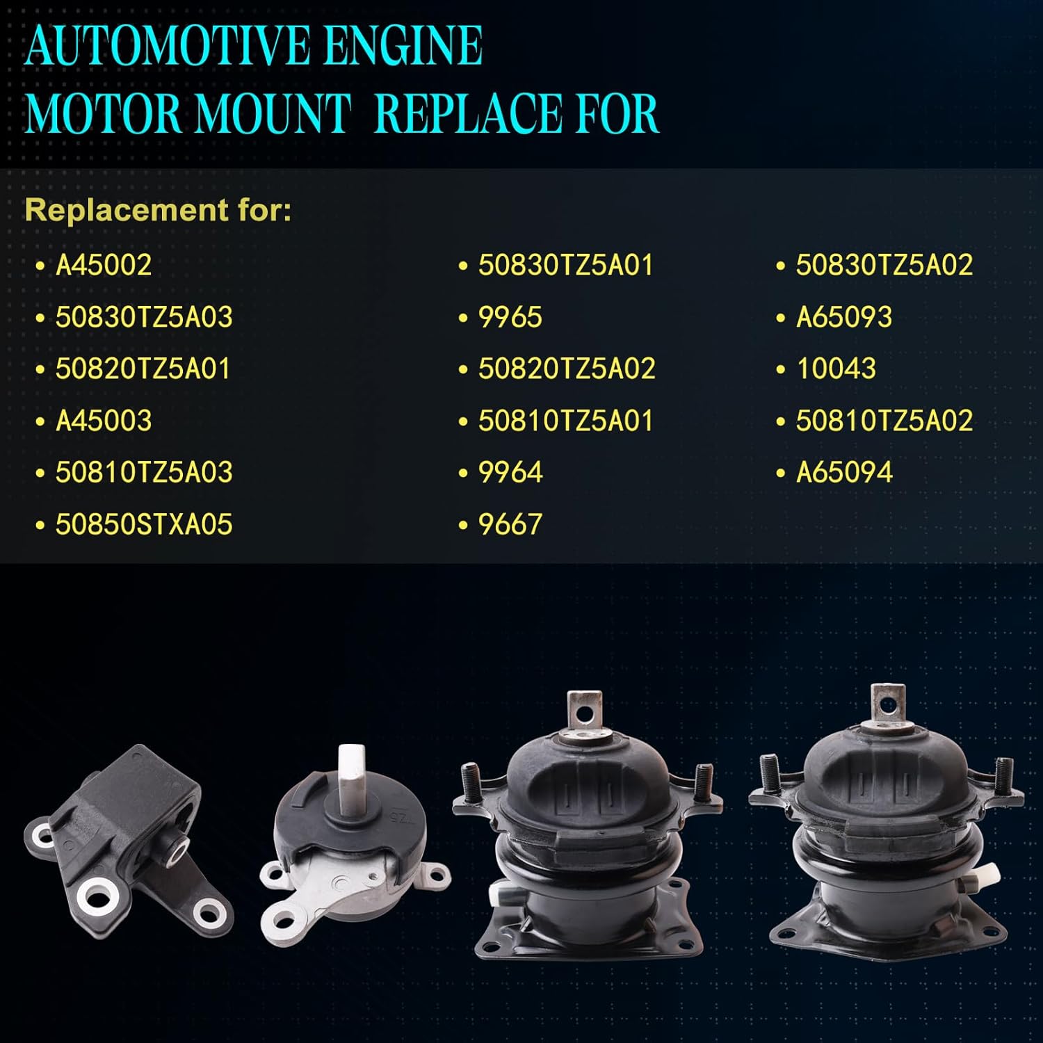 - NÚMERO OE: Suporte de motor substitui os números A45002, 9965, 50830TZ5A01, 50830TZ5A02, 50830TZ5A03, A65093, 10043, 50820TZ5A01, 50820TZ5A02, A45003, 9964, 50810TZ5A01, 50810TZ5A02, 50810TZ5A03, A65094, 9667, 50850STXA05.