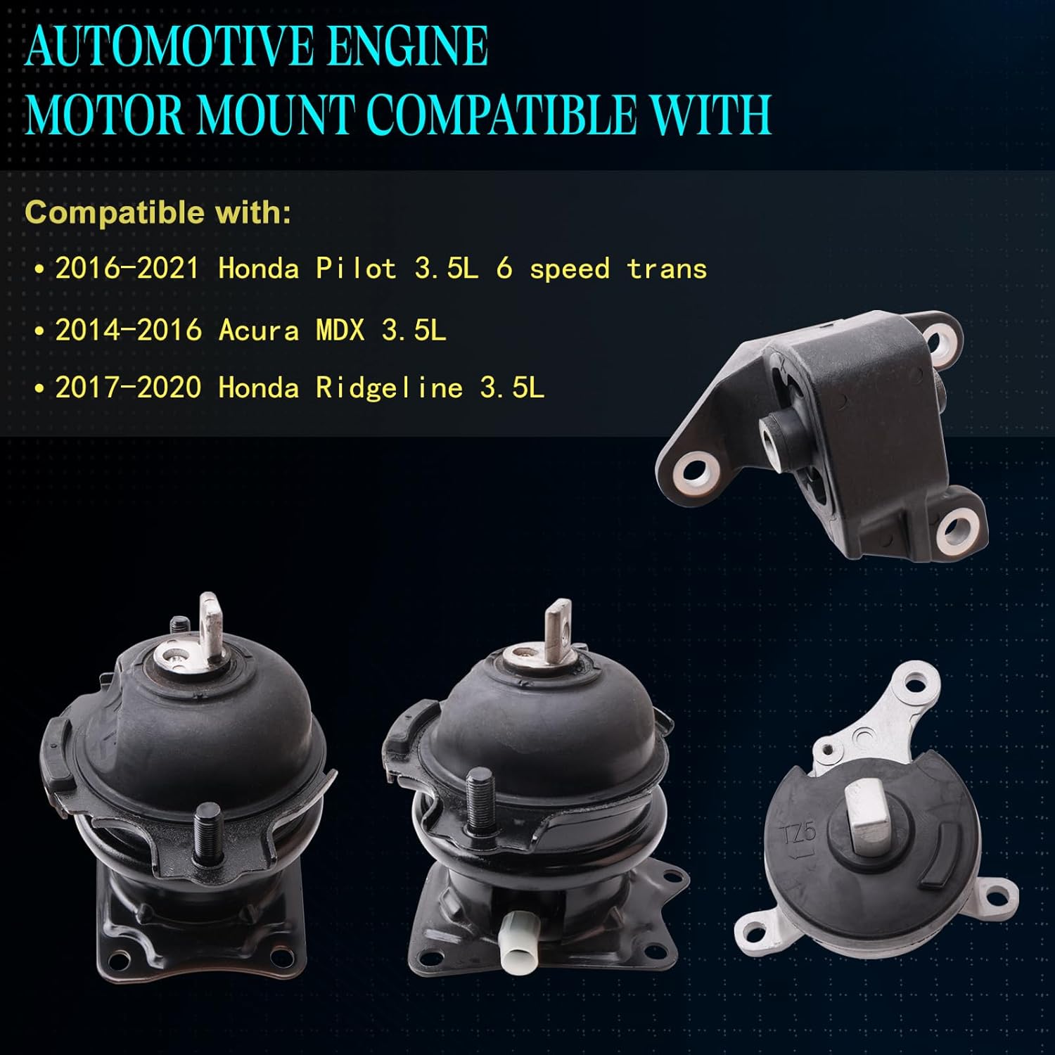 - COMPATÍVEL COM: Este conjunto de suportes de motor é compatível com: Pilot 3.5L 6 velocidades (2016-2021), Acura MDX 3.5L (2014-2016) e Ridgeline 3.5L (2017-2020).