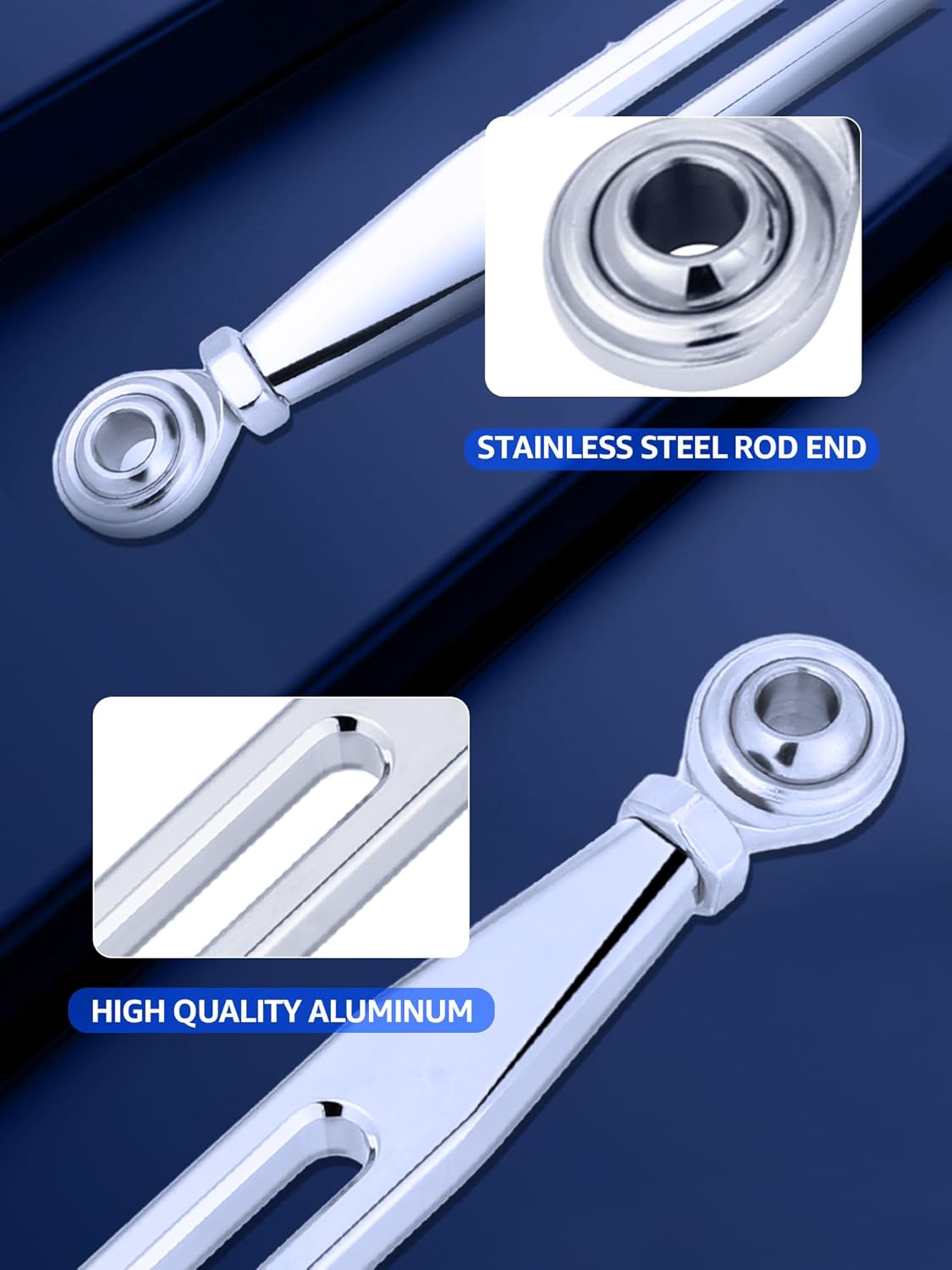Com um comprimento ajustável de 12″ (300mm) a 13″ (330mm), medido de parafuso a parafuso, este produto permite que você modifique a altura da ligação de marcha conforme suas necessidades, garantindo um ajuste perfeito para sua pilotagem.