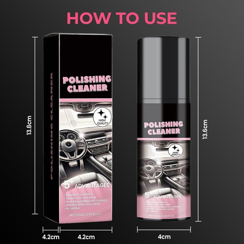 A aplicação é extremamente simples: basta borrifar o limpador polidor diretamente na área desejada e limpar com um pano ou esponja. Não é necessário enxaguar, tornando-o ideal para o cuidado completo do seu carro, incluindo interiores, exteriores, painéis, assentos, volantes, apoios de braço, janelas conversíveis, rodas, para-choques e todas as partes plásticas.