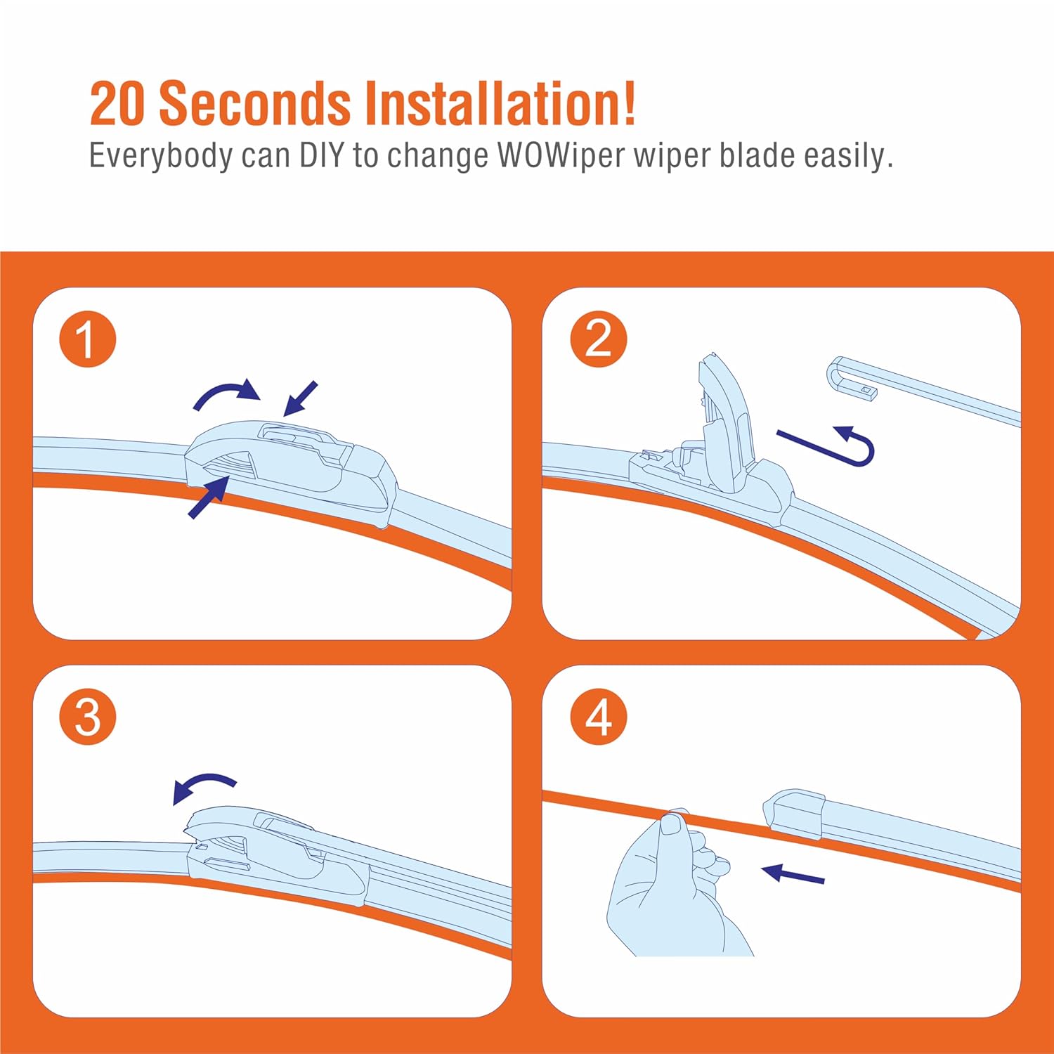 【Fitment】 As lâminas de limpador WOWPIER são substituições diretas para os limpadores de para-brisa do Honda CR-V 2017-2022, oferecendo um ajuste perfeito e funcionalidade ideal.