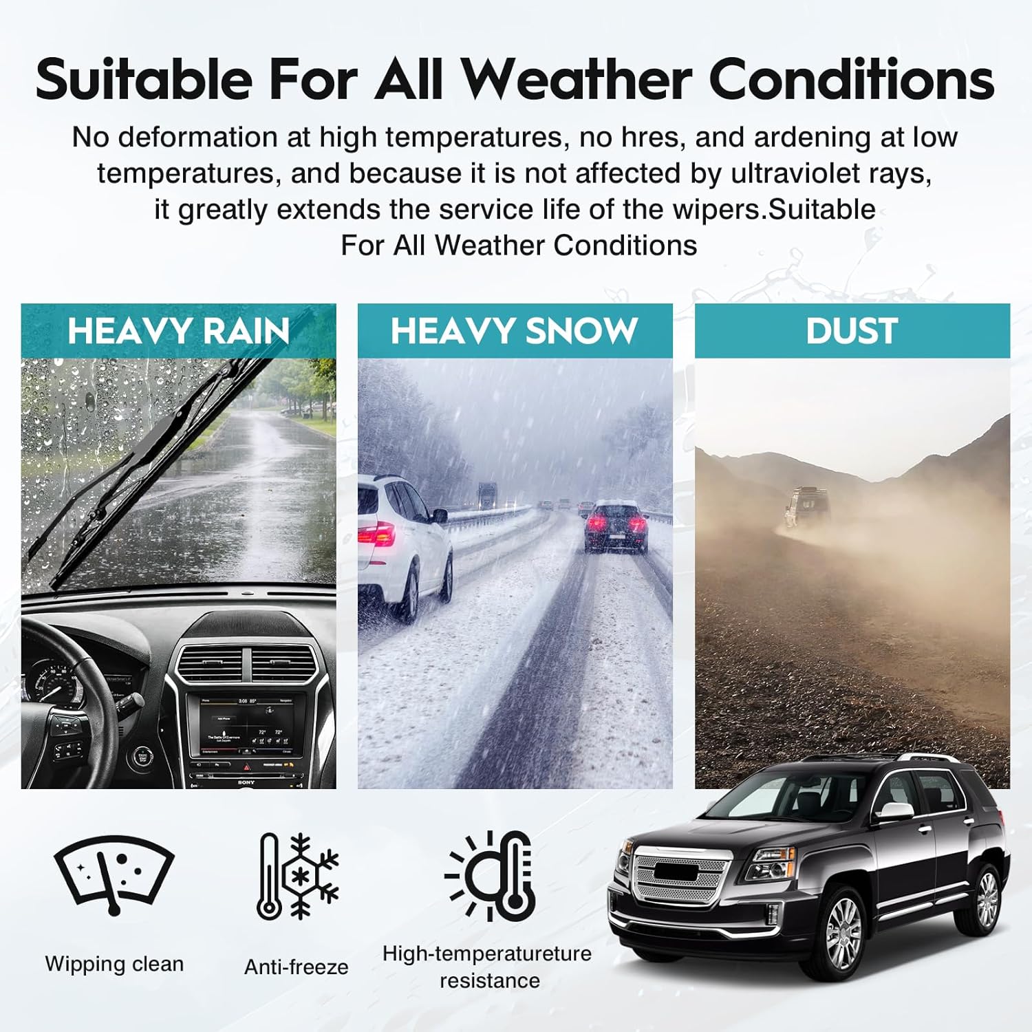 Descrição do Produto: Lâminas de Limpador de Para-brisa de Silicone para Chevrolet Equinox/GMC Terrain 2011-2017
