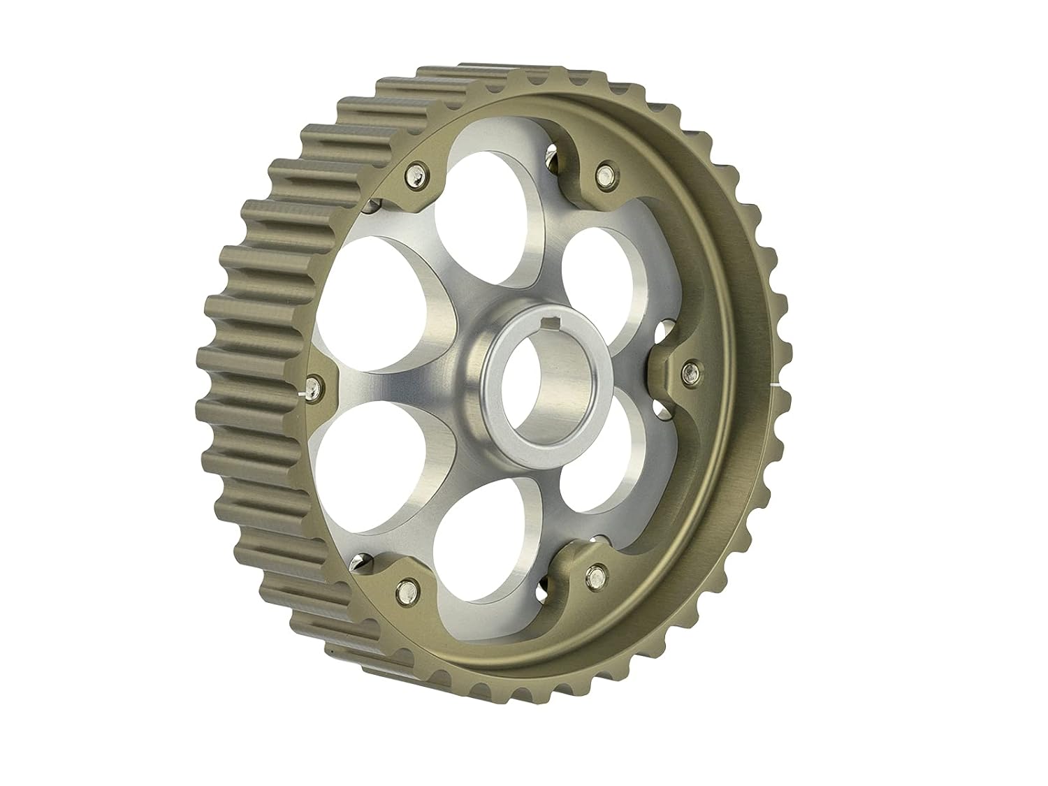 The cam gear on the D16 has an integrated key way on the gear, this one does not do it will have to be manufactured or purchased to make this work. They claim on the Skunk2 website that this item is 35 percent lighter then stock which isn’t the case. It is lighter but only about 25 percent. Stock is 328g, Skunk2 242g. They should have more accurate descriptions and maybe change it to 25 percent. I saw this with the Skunk2 shift knob I purchased, wasn’t what weight they claimed it was. Overall manufacturing on this item is top notch, just a little disappointed with the two flaws.