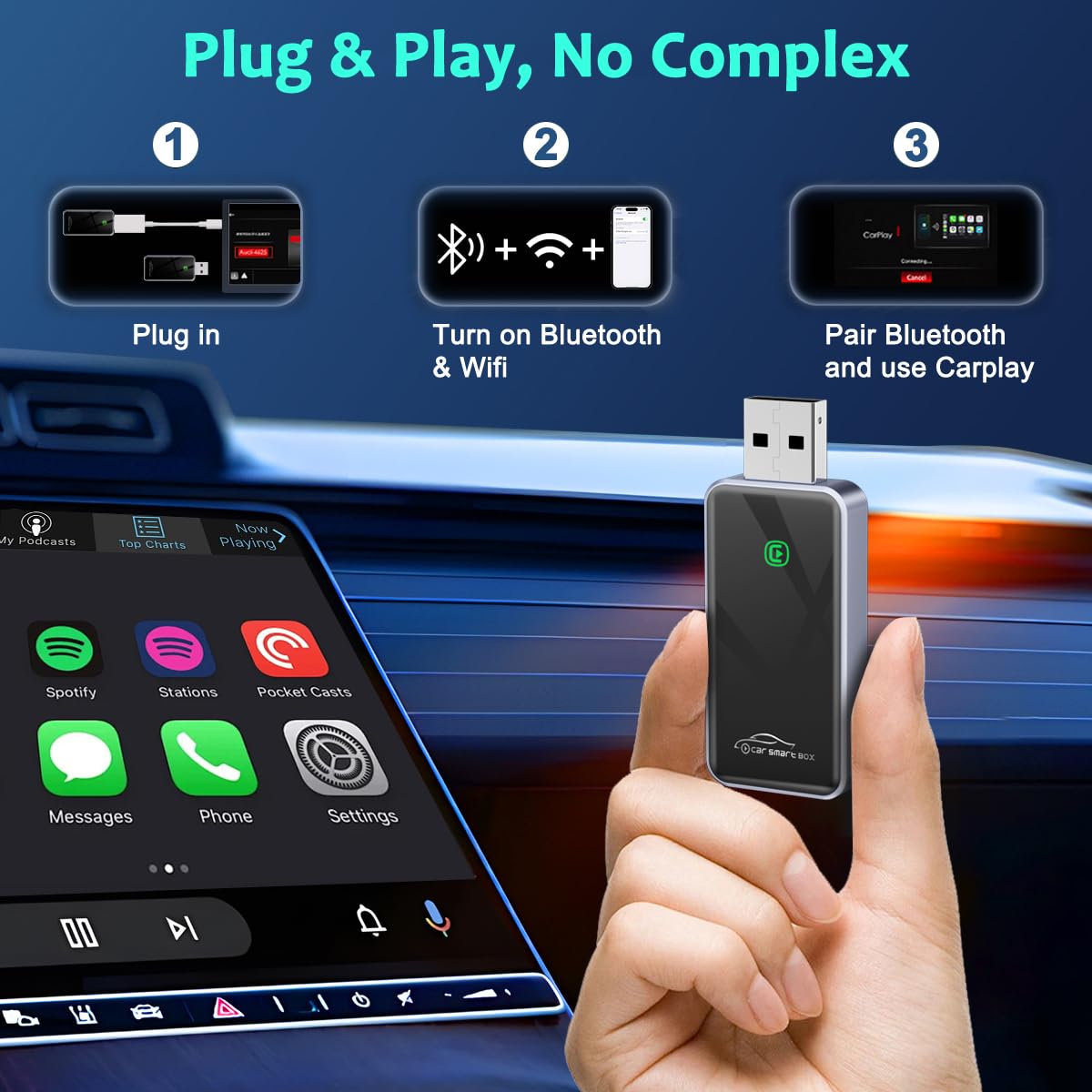 – Conexão Sem Fio: Converte CarPlay com fio em sem fio.