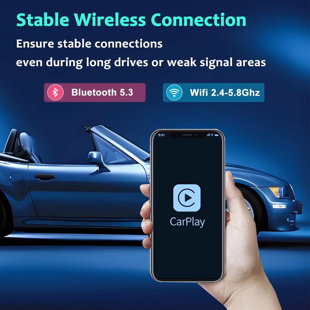 Graças à tecnologia avançada de Bluetooth 5.0 e Wi-Fi dual-band 2.4G/5G, o adaptador garante uma conexão estável, mesmo em longas viagens ou em áreas com sinal fraco. Você não terá problemas de atraso ao ouvir música, fazer chamadas ou usar mapas. Além disso, a exibição na tela do carro permanece inalterada, garantindo uma experiência visual consistente.
