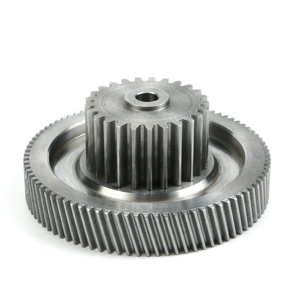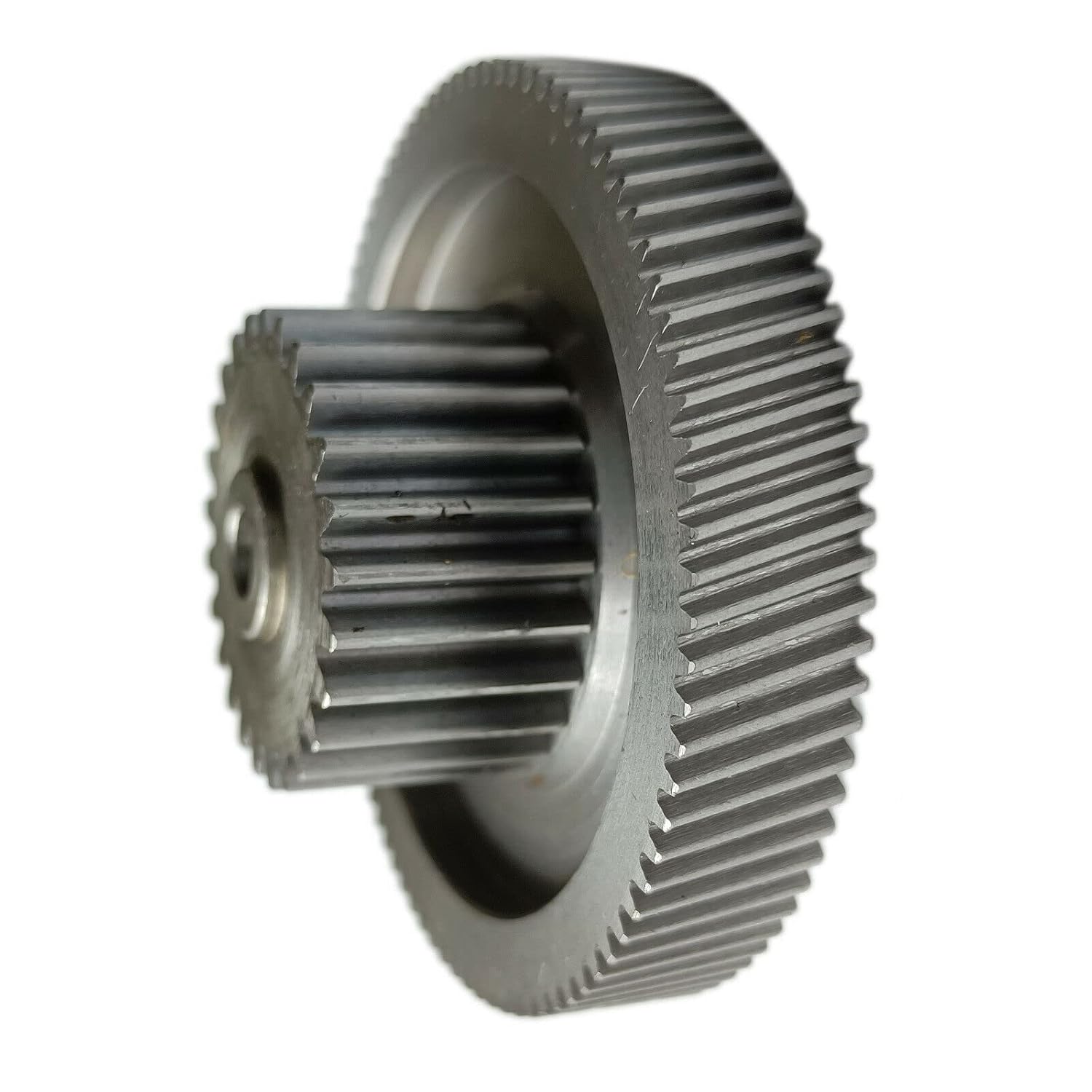 – Dimensões Específicas: A engrenagem possui 85 dentes pequenos com diâmetro de 2 1/4” e 25 dentes maiores com diâmetro de 1 1/8”. A altura da engrenagem quando posicionada em uma superfície plana é de 15/16”.