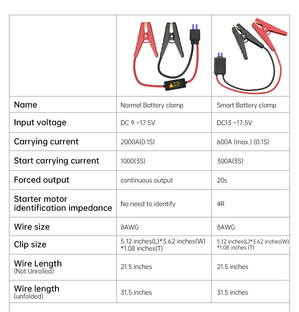 This product is ONLY the cables for the jump start. Now, it does say so in the title, but the pictures have it with an air compressor jump start in the photo; that (the actual battery part) is NOT included. That means these are rather overpriced since I was able to do a quick search and find a kit that DOES include the battery part for the same price. Now, with these being “smart” versions, they may be a higher quality and safer for use, but you will have to decide for yourself if that is worth the price. (Since I do not have the battery side of it myself, these are useless as I cannot test if they work as written with the safety features.)