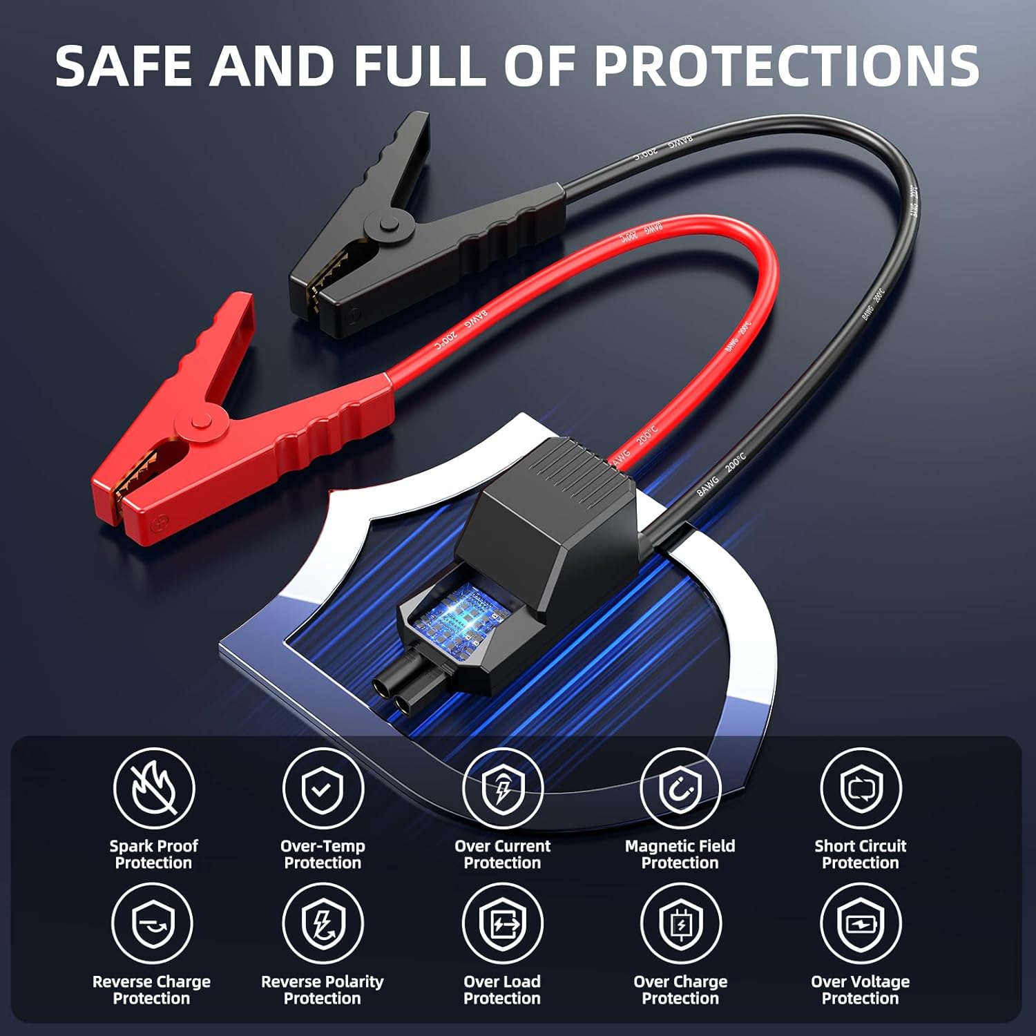 5 avaliações para Garras Inteligentes para Partida de Carro S ZEVZO – Cabos de Bateria com 10 Proteções para Jump Starter ET03