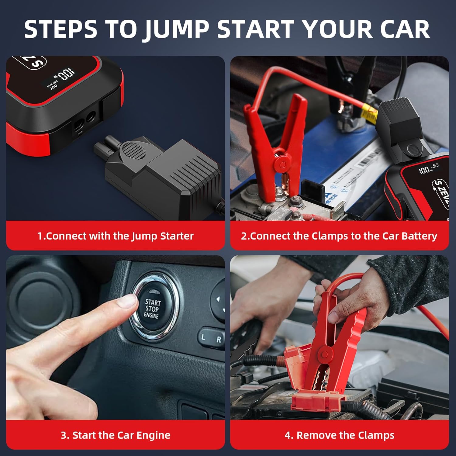 5 avaliações para Garras Inteligentes para Partida de Carro S ZEVZO – Cabos de Bateria com 10 Proteções para Jump Starter ET03