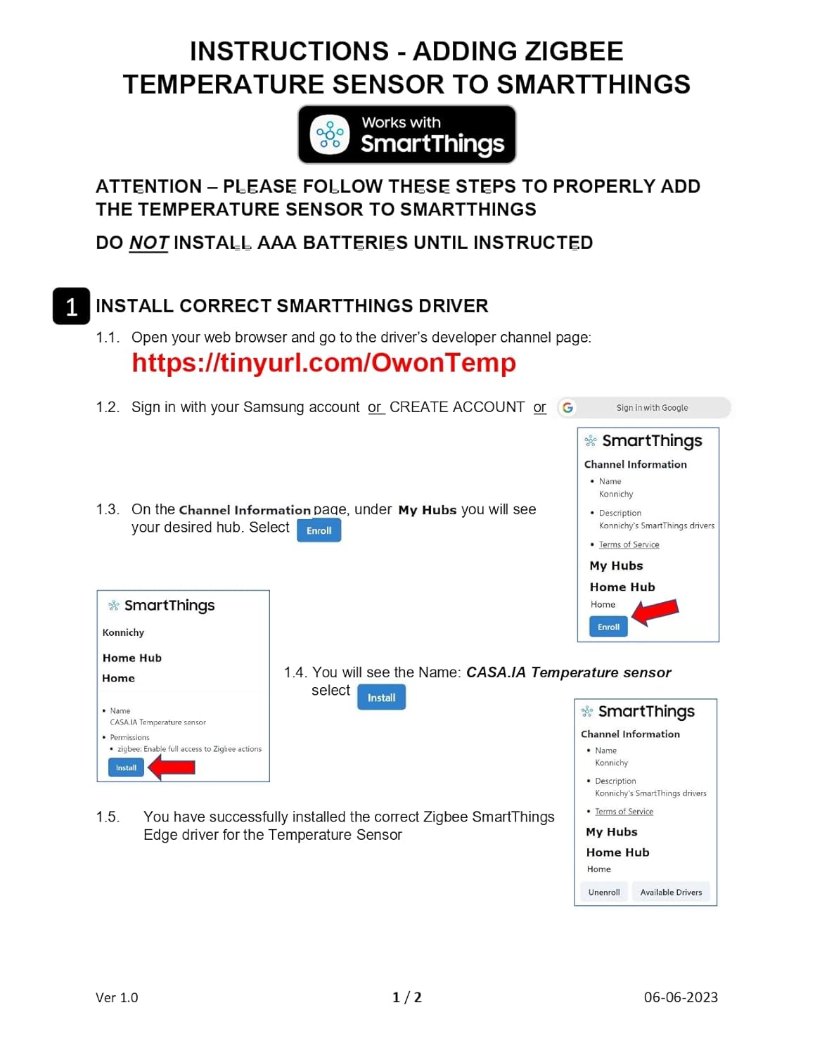 1. Instalação do Sensor: Siga as instruções fornecidas nas imagens ou abaixo para conectar o sensor ao seu sistema SmartThings.