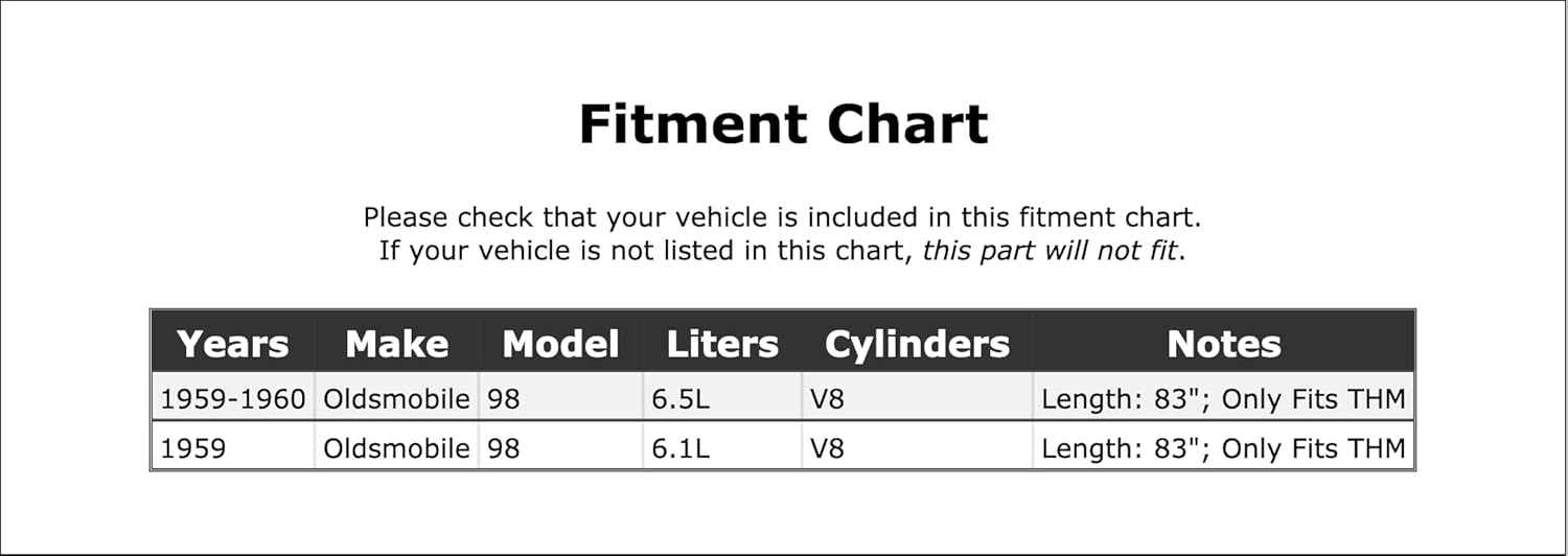 – Design Específico: Projetado para se encaixar perfeitamente nos modelos Oldsmobile 98 de 1959 e 1960, evitando problemas de instalação.