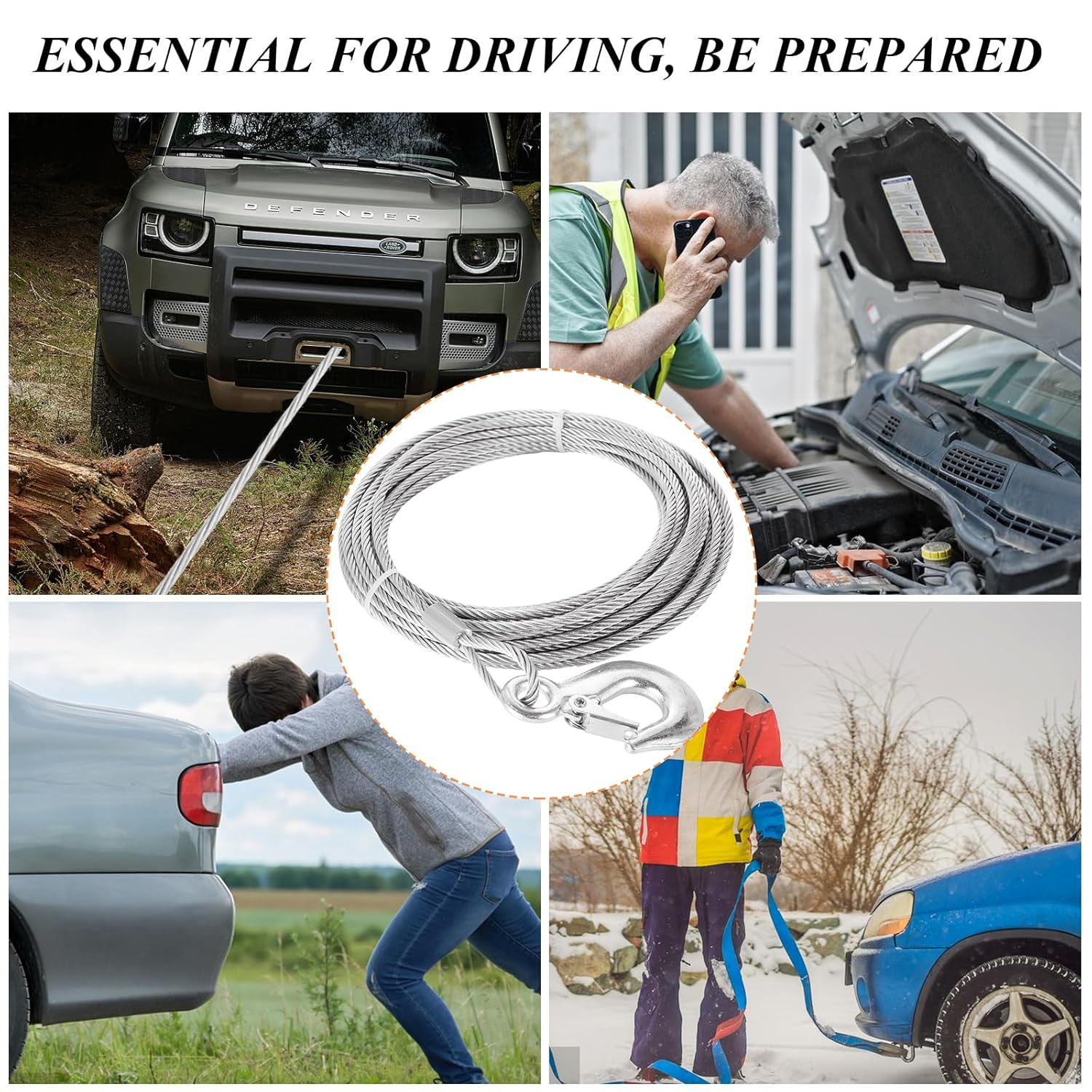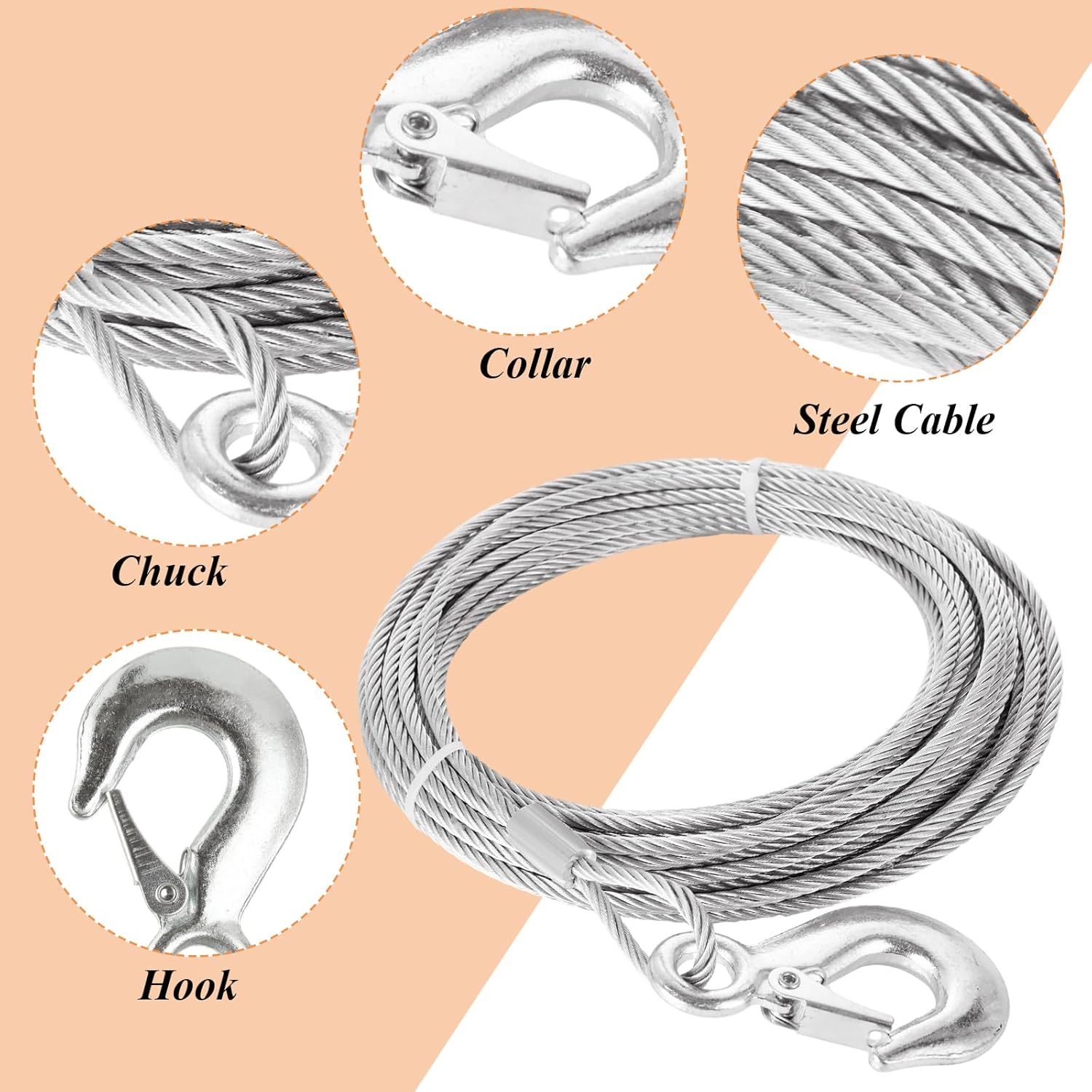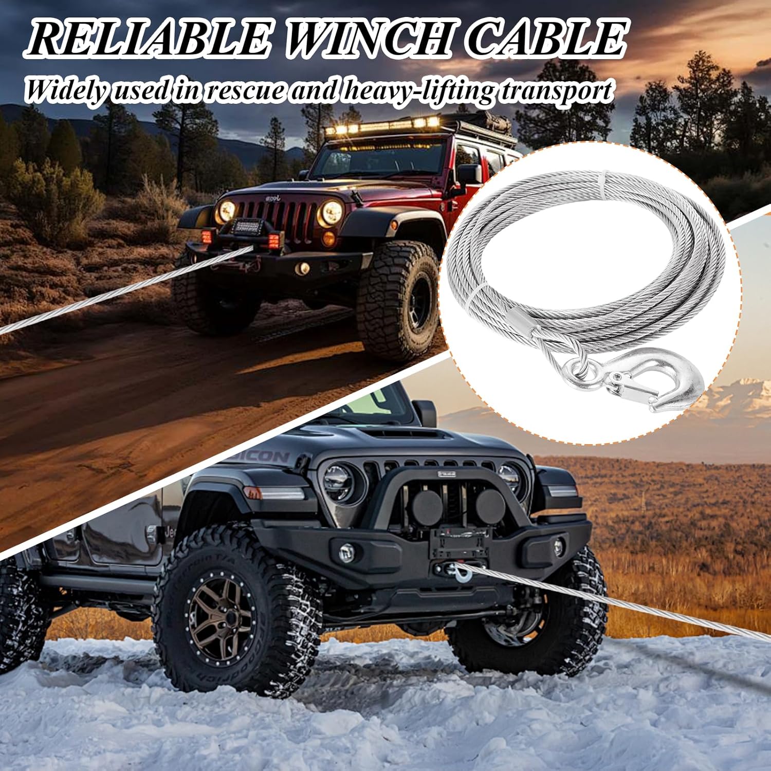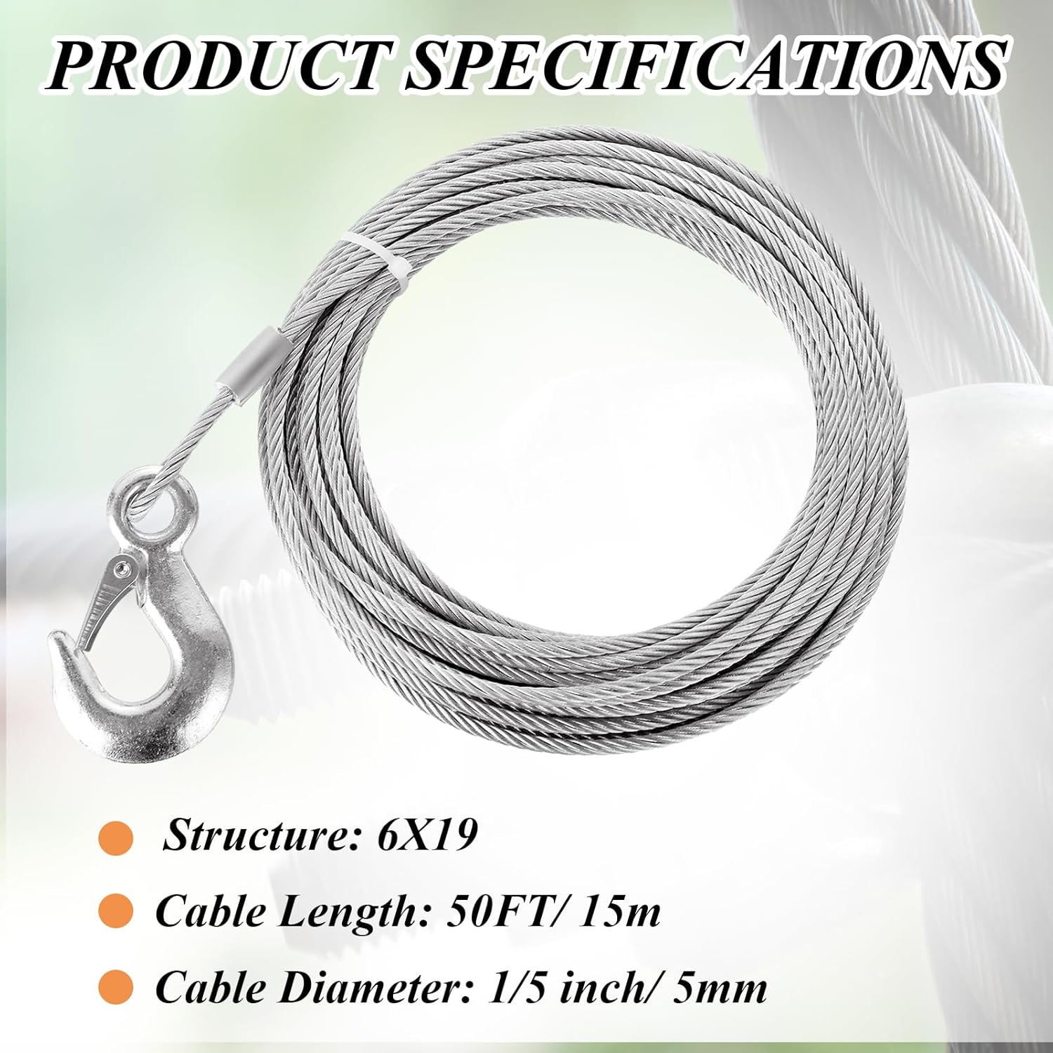 Apresentamos o Cabo de Guincho de Aço com Gancho de 3/16 Polegadas x 50 Pés, a solução ideal para quem busca força e durabilidade em aplicações de guincho e reboque. Com um diâmetro de 3/16 polegadas (5 mm) e um comprimento de 50 pés (15 m), este cabo é projetado para suportar as demandas mais rigorosas, sendo equipado com um gancho de clevis de aço carbono de alta resistência, que conta com um fecho de segurança para maior conveniência e proteção.