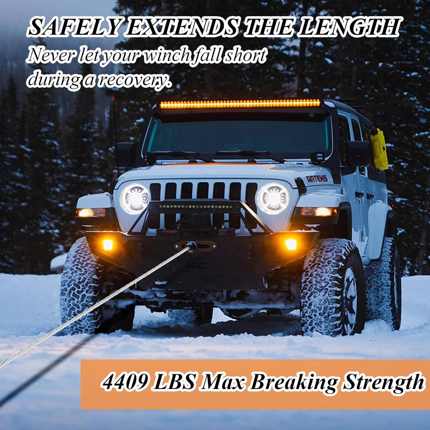Resposta: O Cabo de Guincho de Aço com Gancho de 3/16 Polegadas tem uma força de ruptura máxima de 4.409 libras.