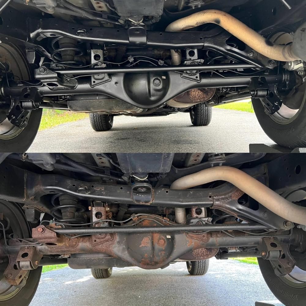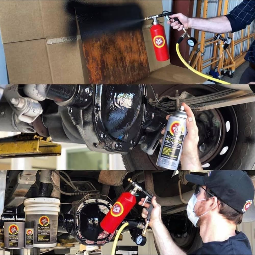 Fluid Film really works and protects your vehicle and other steel items like garden equipment from rust. I have been coating my truck with this since purchasing in 2007. 300K miles and 17 years later in New England winters without any rust. The sprayer attachment is a bit messy but allows you to get inside frame rails and panels. Cheap insurance against early frame failure.