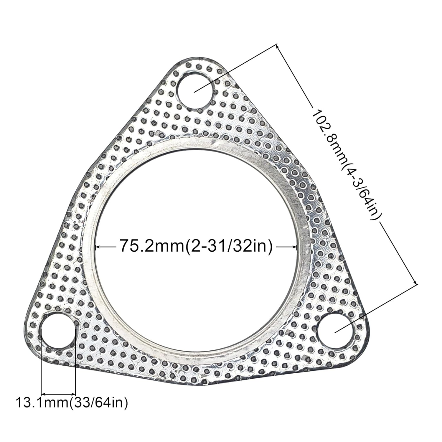 A junta de escape Strongthium de 3 polegadas é a solução definitiva para quem busca um desempenho superior em sistemas de escape. Com um design preciso para flanges de 3 polegadas (76,2 mm) e configurações de 3 parafusos, esta junta garante uma compatibilidade perfeita com montagens de escape pesadas e aplicações industriais. A medição exata do espaçamento dos parafusos, com distância centro a centro de 103,5 mm (4,08″), permite um alinhamento preciso e um aperto seguro, utilizando parafusos com diâmetro inferior a 12,5 mm (1/2″).