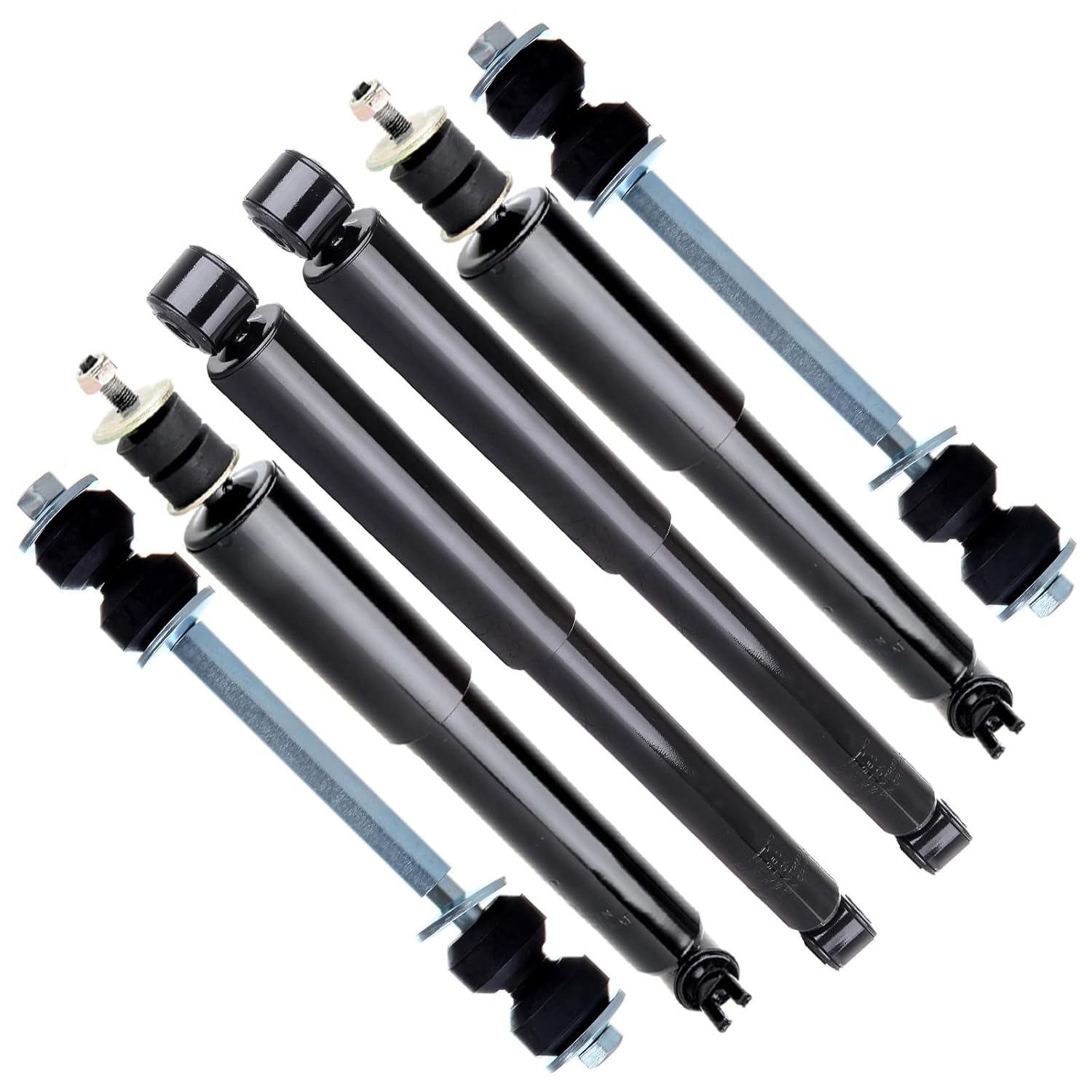 - Pacote Incluído: O kit de suspensão inclui 2 amortecedores dianteiros, 2 amortecedores traseiros e 2 kits de link da barra estabilizadora, totalizando 6 peças para uma instalação completa.