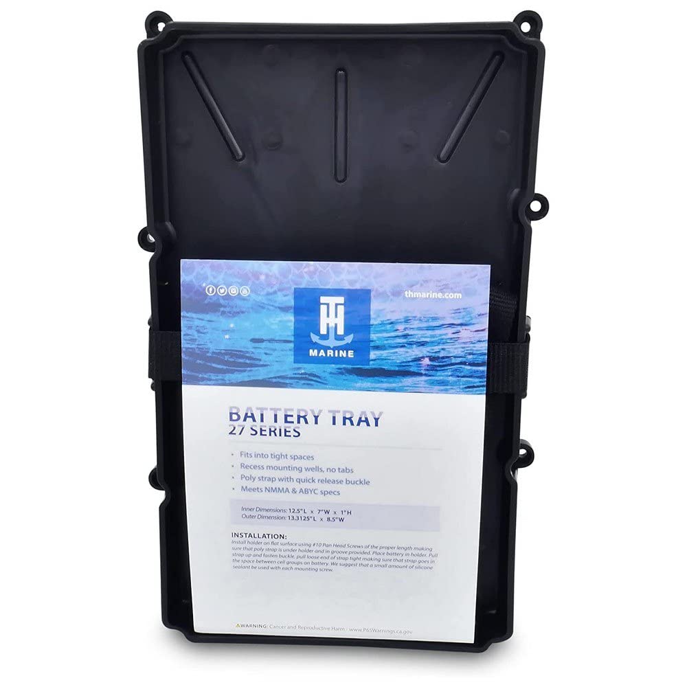 O T-H Marine NBH-27P-DP Narrow Battery Tray Holder – 27 Series, na cor preta, é a solução ideal para quem busca um suporte de bateria compacto e eficiente. Com dimensões mínimas de 12-1/2″ de comprimento, 7″ de largura interna, 8-1/2″ de largura externa e apenas 1″ de altura, este suporte é projetado para se encaixar em espaços apertados, garantindo que você possa maximizar o uso do seu espaço disponível.