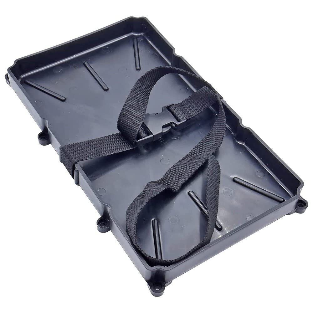 The plastic tray is sturdy and holds the battery in place. Had to play around with the strap to keep it in place as I was bolting the pad down. It would be useful to add plastic guilds at the bottom of the tray to hold the strap in place.