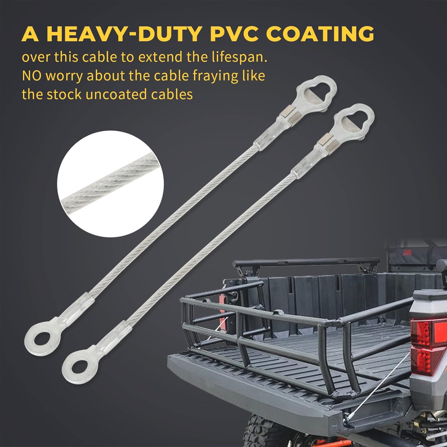 I had to slightly modify for my Kubota RTV 1100, but that’s ok cause these are not made for that application. The hole in the cable clips was just a hair too small to slip over the metal stub on the Kubota tailgate. I filed them out and they went on just fine. The cables are very beefy and appear to be corrosion resistant. They are about 1/4″ shorter than the Kubota cables, so my tailgate does not open fully 90 degrees (it’s very close though, like 89 degrees, just slightly off). But these were cheap and did the job and yet again I didn’t have to go get screwed over by Kubota’s ridiculous parts prices. Good value and good product.