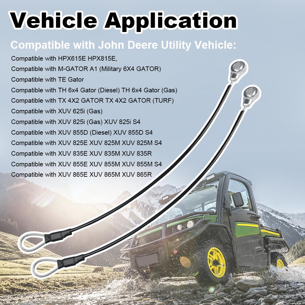 - Aplicação do Veículo: Cabos de equipamento de porta-traseira compatíveis com John Deere HPX615E, HPX815E, M-GATOR A1 (GATOR Militar 6X4), TE Gator, TH 6×4 Gator (Diesel e Gas), TX 4X2 GATOR, XUV 625i (Gas), XUV 825i (Gas), XUV 825i S4, XUV 855D (Diesel), XUV 855D S4, XUV 825E, XUV 825M, XUV825M S4, XUV 835E, XUV 835M, XUV 835R, XUV 855E, XUV 855M, XUV855M S4, XUV 865E, XUV 865M, XUV 865R.