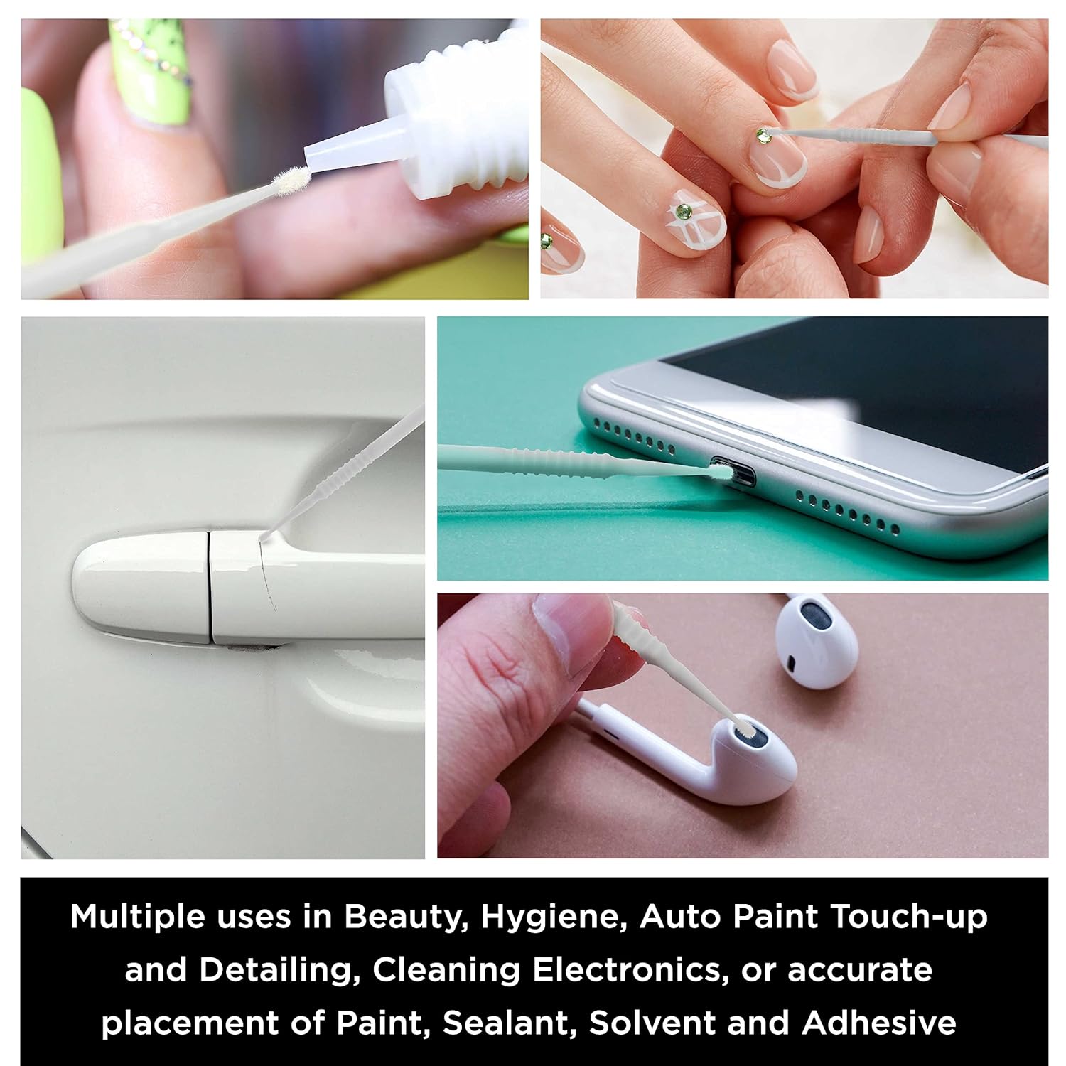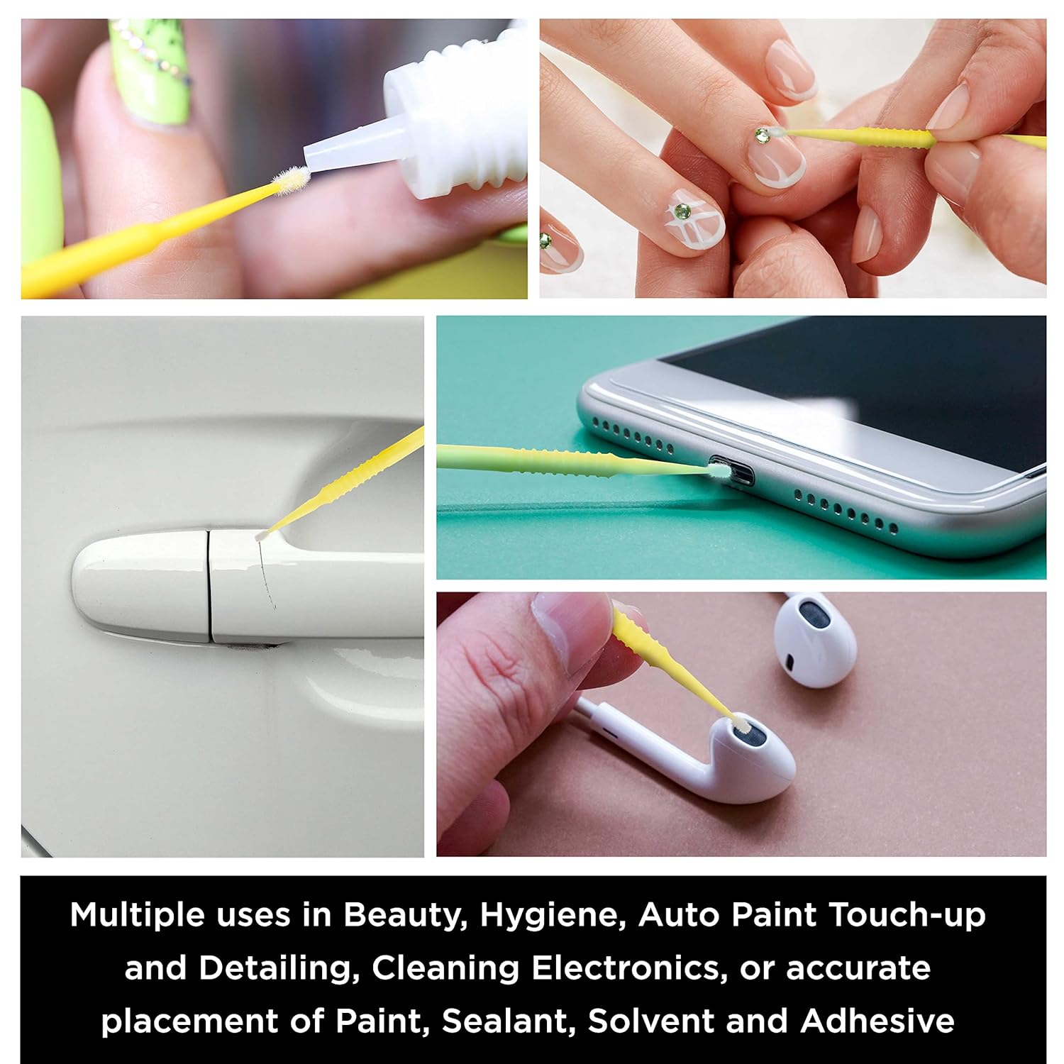 Os aplicadores são livres de fiapos e possuem uma ponta de fibra não gotejante, feita de fibras não absorventes, o que evita desperdícios e garante uma aplicação limpa. O frasco inovador permite que um pincel seja dispensado de cada vez, facilitando o uso e mantendo a organização. Esses pincéis são perfeitos para retoques de pintura em automóveis, detalhamento de carros, pintura de pequenos projetos de hobby ou até mesmo para limpar poeira, sujeira e detritos em espaços pequenos e de difícil acesso.