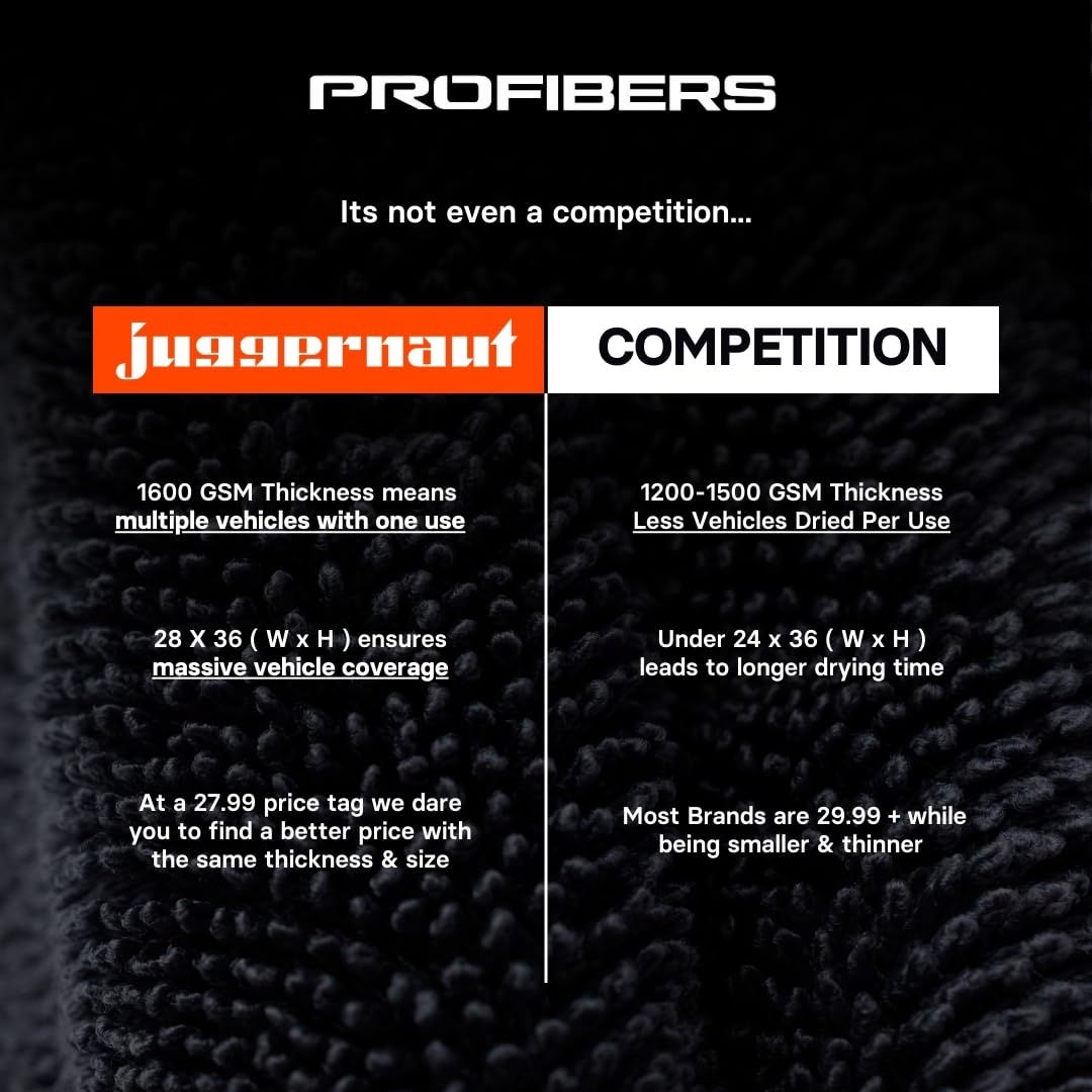 Por que pagar mais por toalhas de detalhamento de carros inferiores? A Juggernaut oferece desempenho premium — tamanho massivo, absorção ideal e segurança contra riscos — a um preço focado em valor.