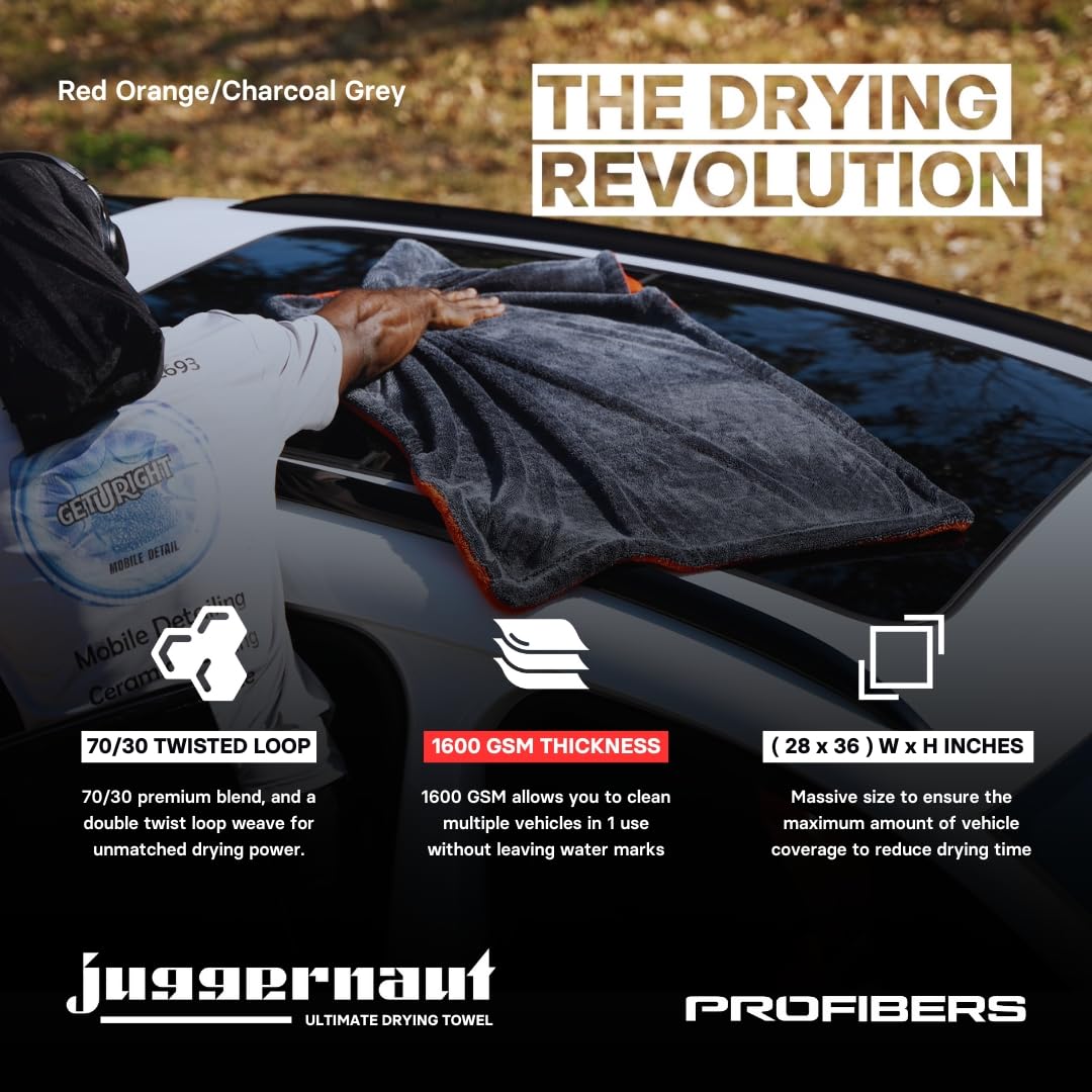 Graças ao seu design generoso de 28” x 36”, a Juggernaut cobre grandes superfícies com facilidade, reduzindo o tempo de secagem em até 80% em comparação com toalhas menores. Isso significa resultados dignos de showroom sem a espera.