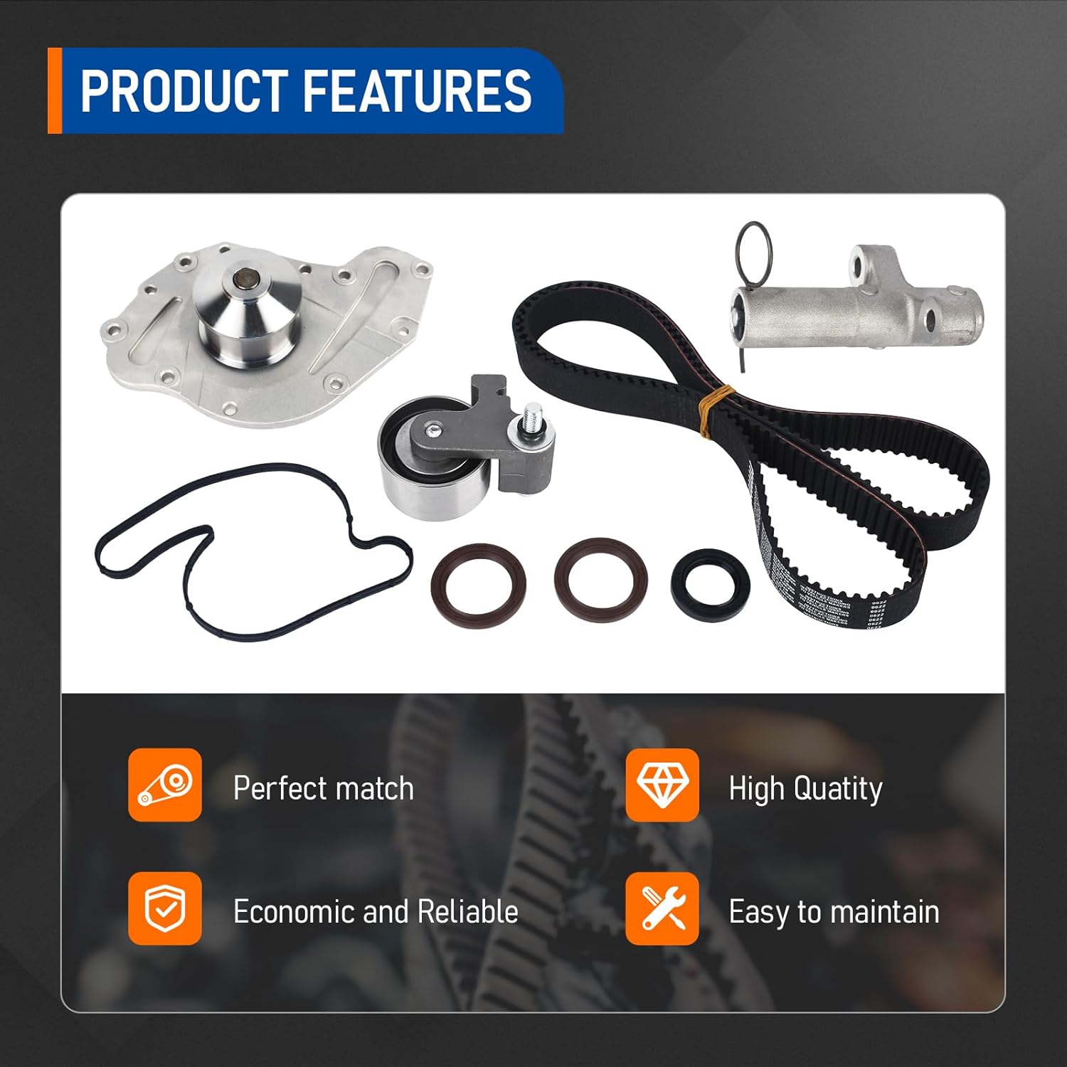 Este Kit de Correia Dentada com Bomba d’Água mantém seu carro em boas condições de funcionamento, com baixo ruído, baixa resistência à transmissão e operação estável. Isso ajuda o motor a funcionar corretamente e melhora a eficiência de combustível, otimizando assim o desempenho do motor.