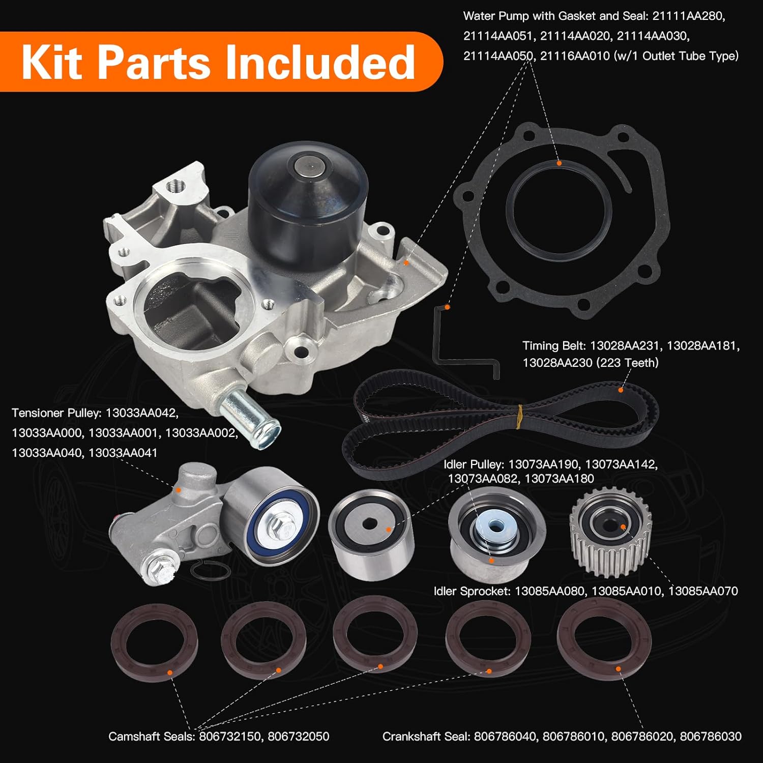 O Kit de Correia Dentada com Bomba d’Água é a solução ideal para manter o desempenho do seu Subaru em alta. Compatível com modelos como o Subaru Forester (2006-2010), Impreza (2006-2011), Legacy (2010-2012) e Outback (2006-2012), este kit foi projetado para atender às exigências dos motores 2.5L SOHC Naturally Aspirated, com o código de motor “EJ253”. Antes de realizar a compra, é fundamental verificar a compatibilidade do produto com seu veículo, utilizando o menu de veículos disponível na parte superior da lista.