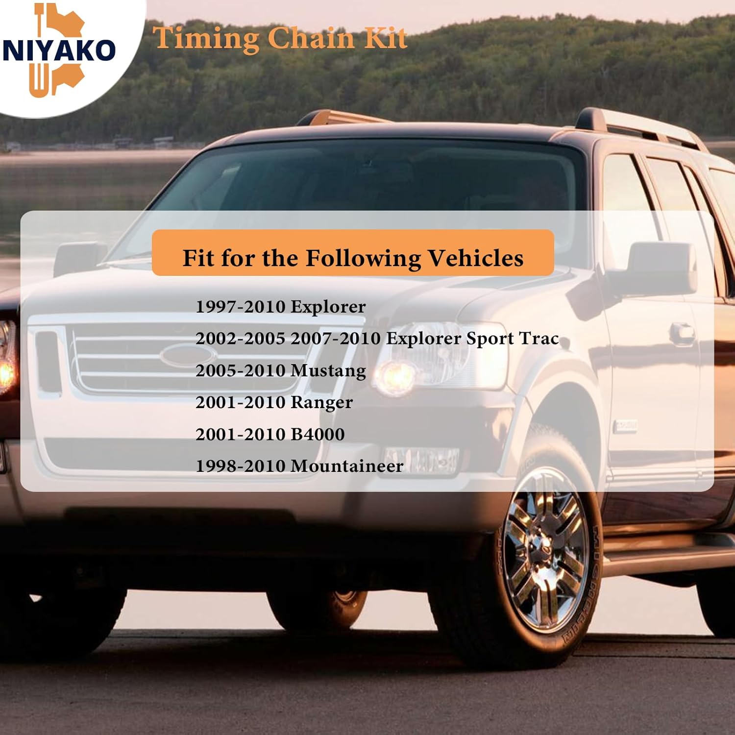 Resposta: O Kit KT4038S é compatível com Ford Explorer, Mustang, Ranger, Mazda B4000 e Mercury com motor 4.0L, fabricados entre 1997 e 2010. Verifique os números de peça para confirmação.