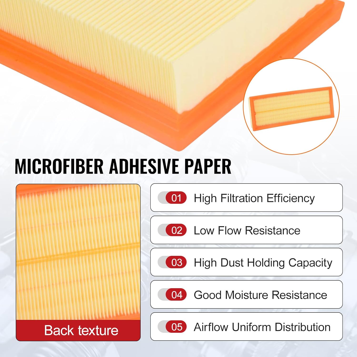 – Alta eficiência de filtragem com materiais de última geração que capturam partículas minúsculas, melhorando a qualidade do ar interno e a proteção do motor.