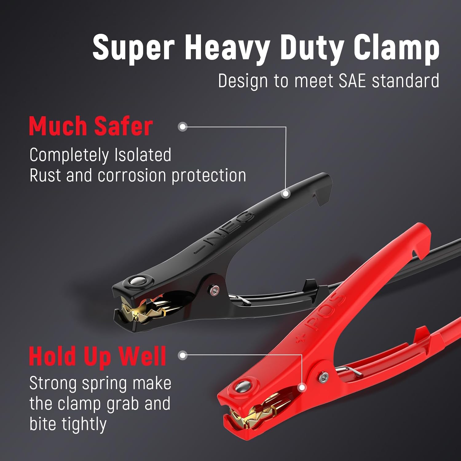 Os cabos possuem garras de alta tensão que garantem uma conexão firme e segura, minimizando o risco de faíscas e garantindo um desempenho confiável. Com 12 pés de comprimento, eles oferecem flexibilidade suficiente para alcançar a bateria do veículo sem dificuldades, mesmo em situações de estacionamento apertado. O material leve e a bolsa de transporte incluída facilitam o armazenamento e o transporte, tornando-os uma adição prática ao seu kit de emergência automotiva.