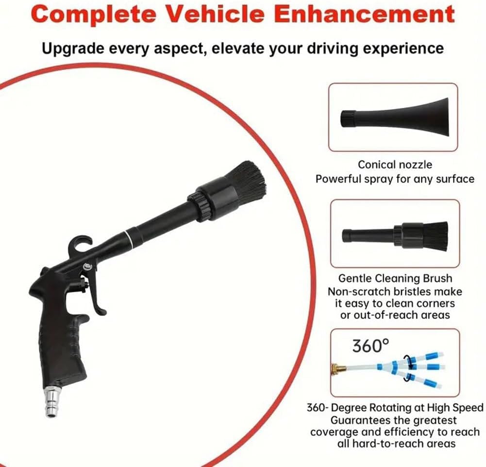 A Tornado Dry Cleaning Gun é a ferramenta profissional de limpeza que todo entusiasta de automóveis e detalhador profissional precisa em seu arsenal. Com um design meticulosamente elaborado, este poderoso equipamento de limpeza a alta pressão é ideal para a limpeza completa de veículos, tanto no interior quanto no exterior. Sua eficácia em remover sujeira e poeira de áreas como jambas de portas, estofados, painéis, porta-copos, rodas e pneus a torna indispensável para quem busca um acabamento impecável.