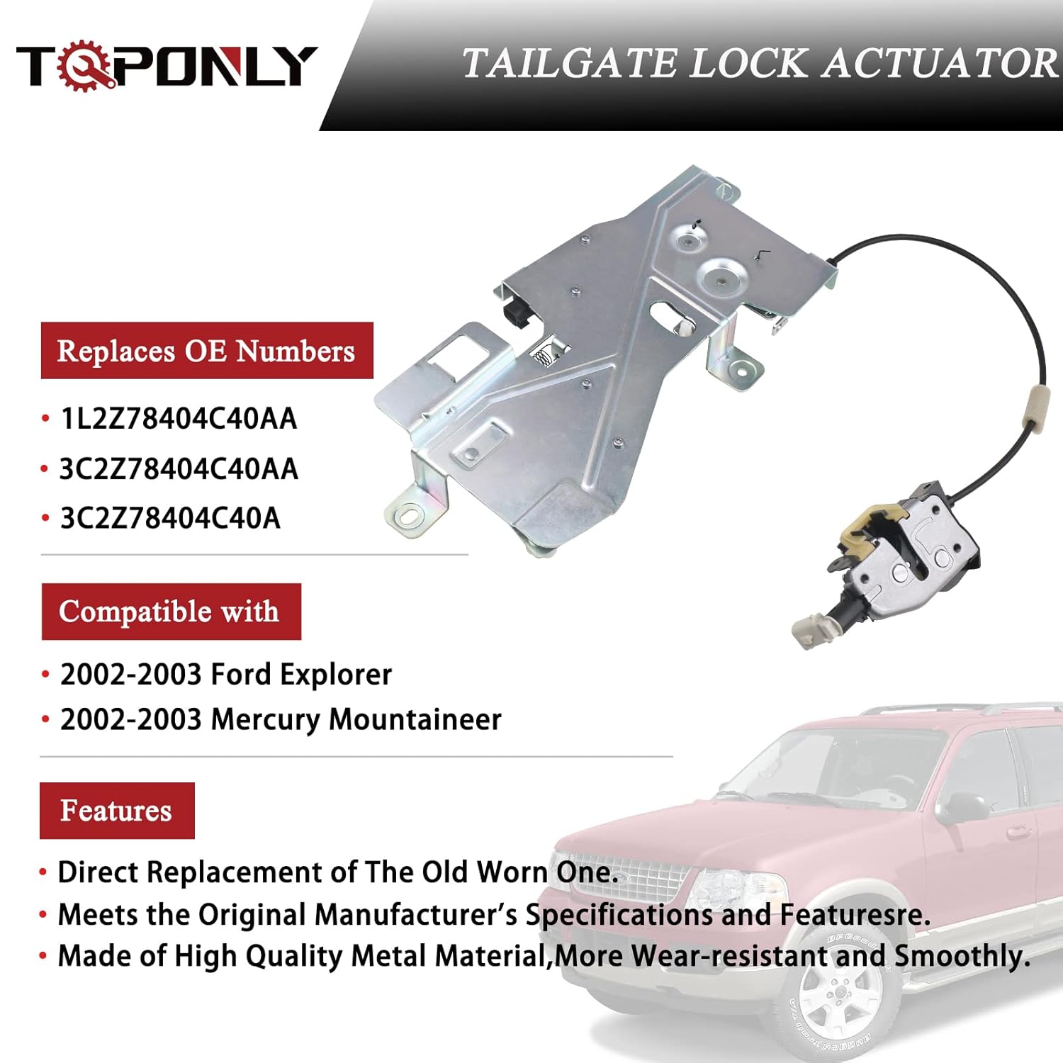 O TQPONLY Tailgate Lock Rear Door Latch Actuator é a solução ideal para quem possui um Ford Explorer ou Mercury Mountaineer dos anos 2002 e 2003. Este atuador de trava de porta traseira é projetado para substituir as peças originais, como 937-664, 1L2Z78404C40AA, 3C2Z78404C40A, 3C2Z78404C40AA, 3L2Z78404C40A, 3L2Z78404C40AA e 3L2Z78404C40B, garantindo que seu veículo retorne à operação normal com segurança e eficiência.