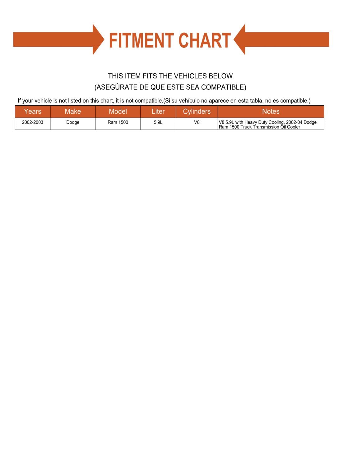 Descrição do Produto: Cooler de Óleo da Transmissão Tranny para Dodge Ram 1500 (2002-2004)