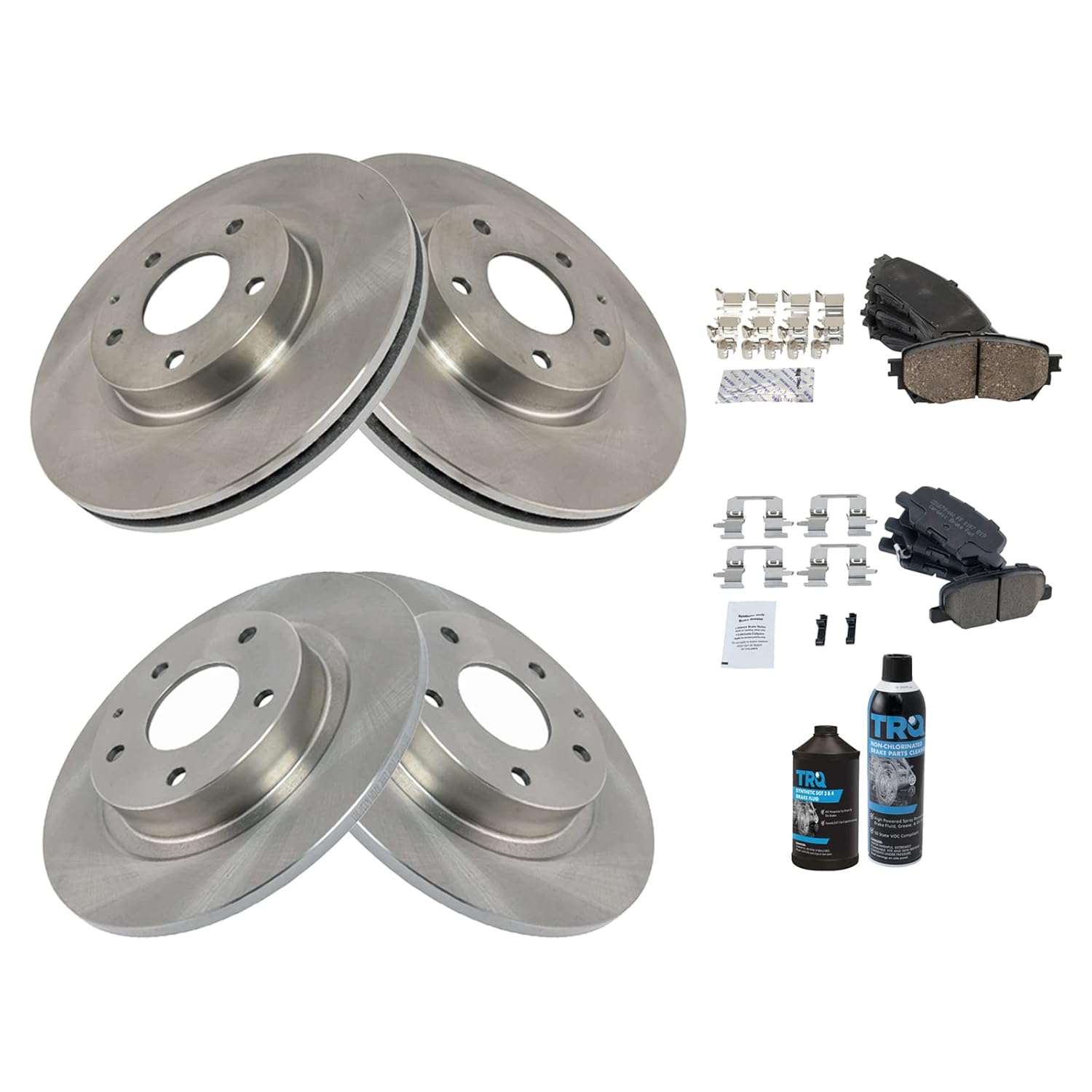 O kit de pastilhas de freio TRQ Front and Rear Brake Pad é a solução ideal para quem busca qualidade e segurança na frenagem do veículo. Este kit é um substituto direto e de qualidade original (OE) para sistemas de freio, garantindo um desempenho superior e confiável. Composto por componentes de alta performance, o kit inclui (2) rotores de freio dianteiros, (2) rotores de freio traseiros, um limpador de freio não clorado de 13 oz, um fluido de freio DOT 3 & 4 de 12 oz, um conjunto de pastilhas de freio cerâmicas dianteiras com graxa de ponto de contato e hardware, e um conjunto de pastilhas de freio cerâmicas traseiras com graxa de ponto de contato e hardware.