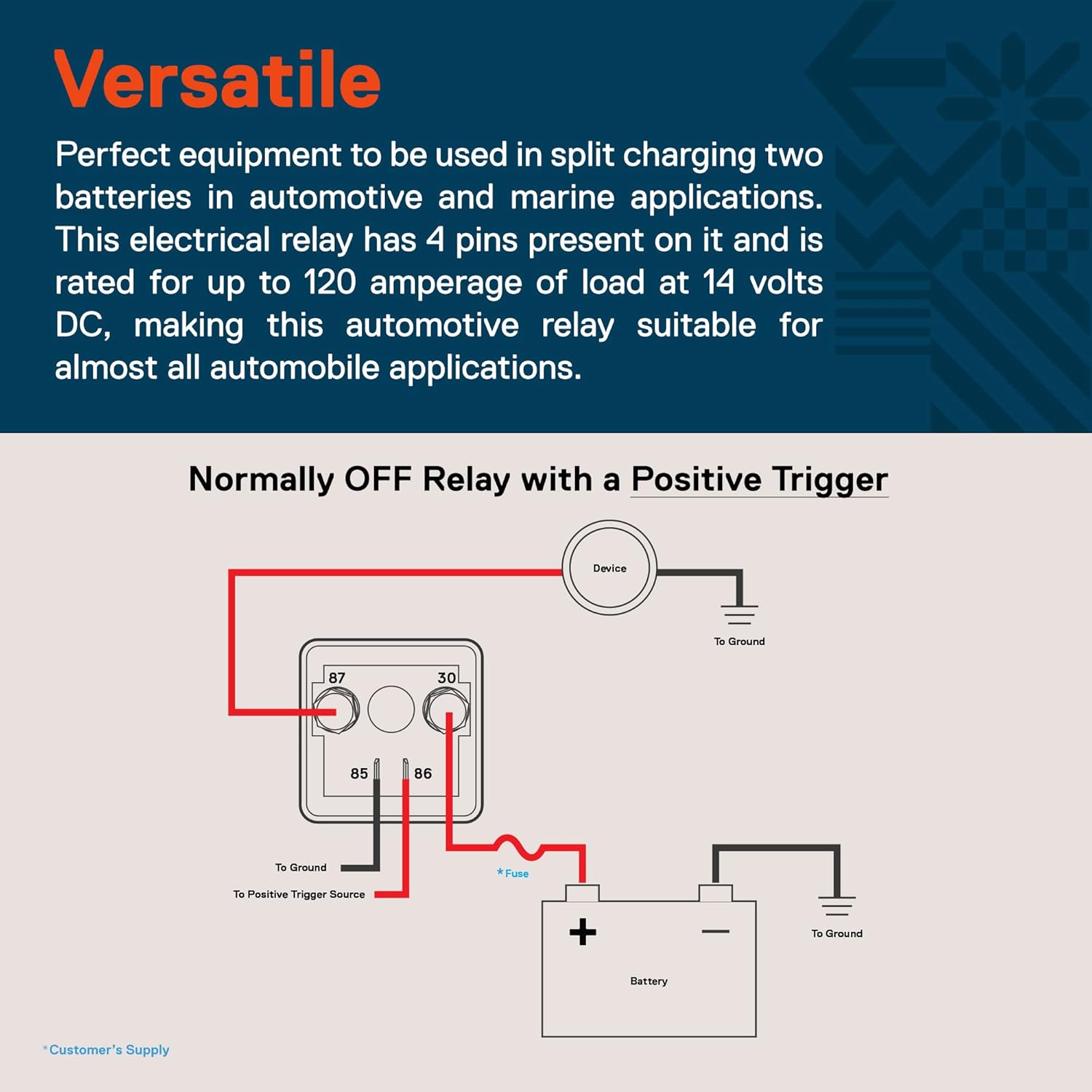 Descrição do Produto: True Mods 12V DC 120 Amp Split Charge Relay Switch